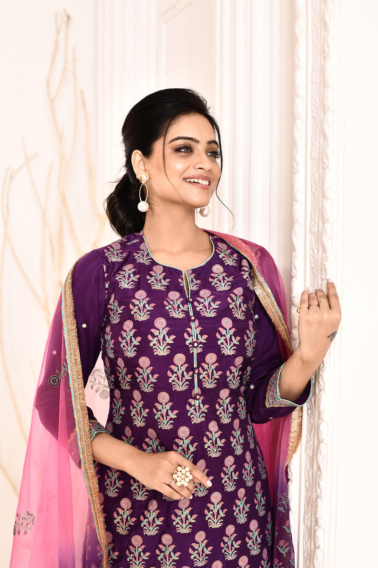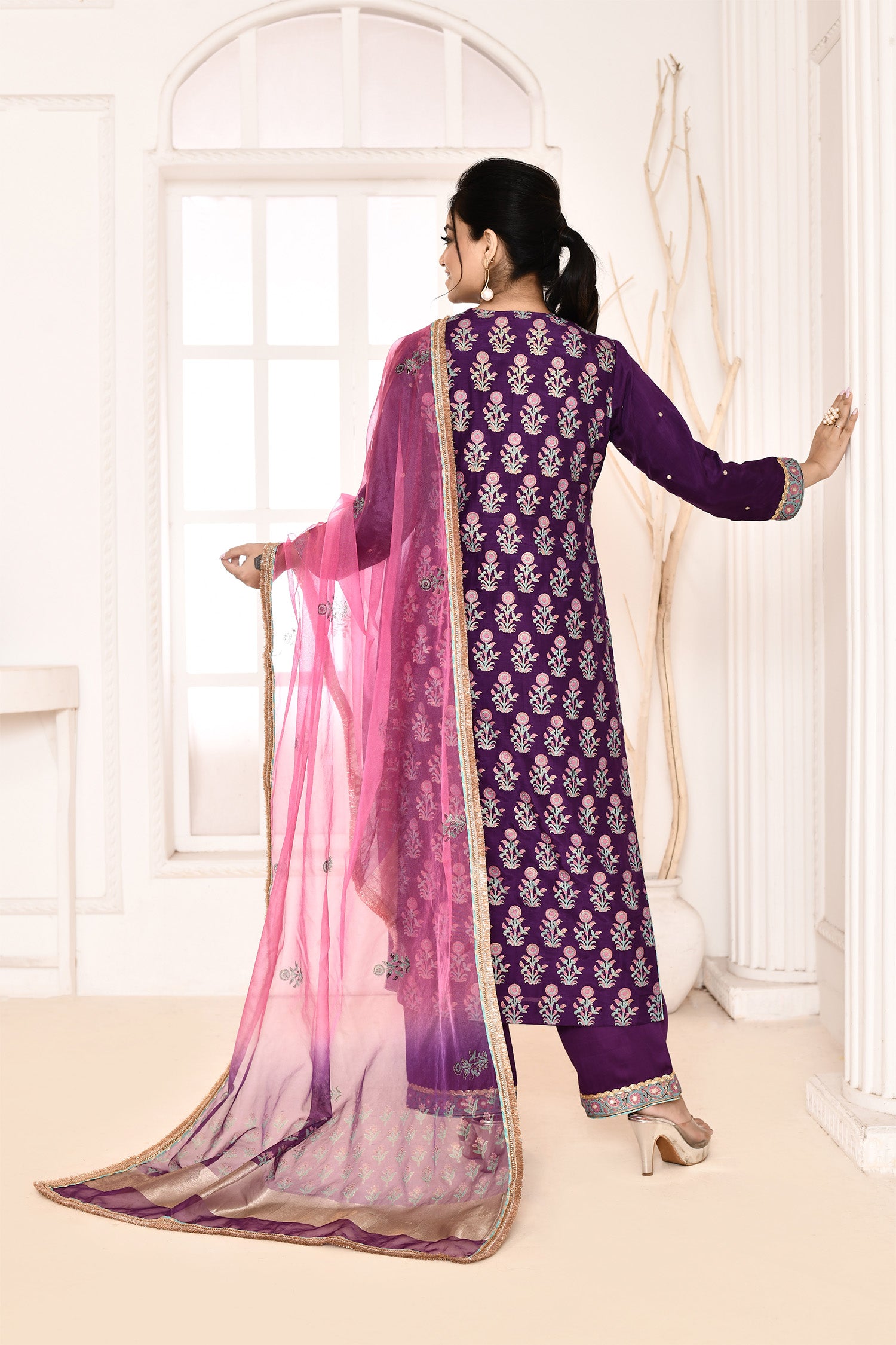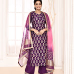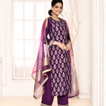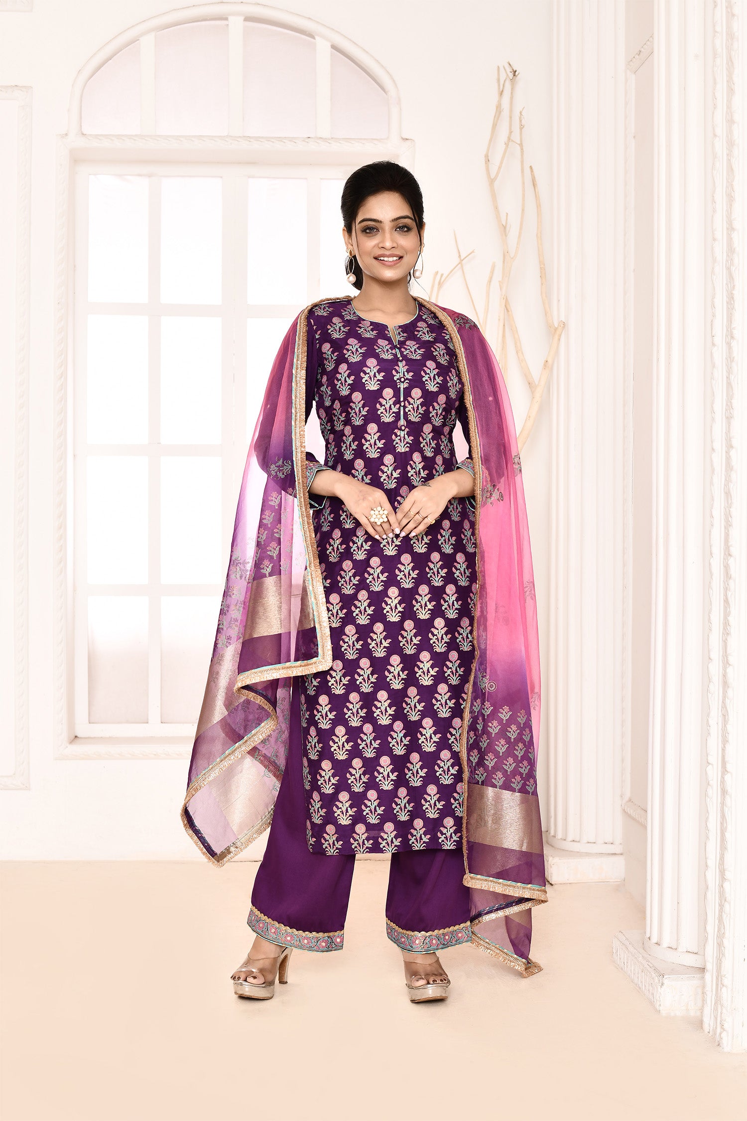 Purple Straight Kurta And Palazzo With Dupatta Set
