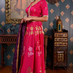 Rani Pink Printed Cotton Silk Lehenga Set With Dupatta