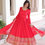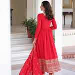 Red Embroidered Anarkali Set