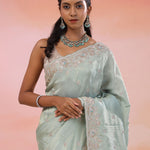 Regent Gray Georgette Tissue Saree With Scallop Border