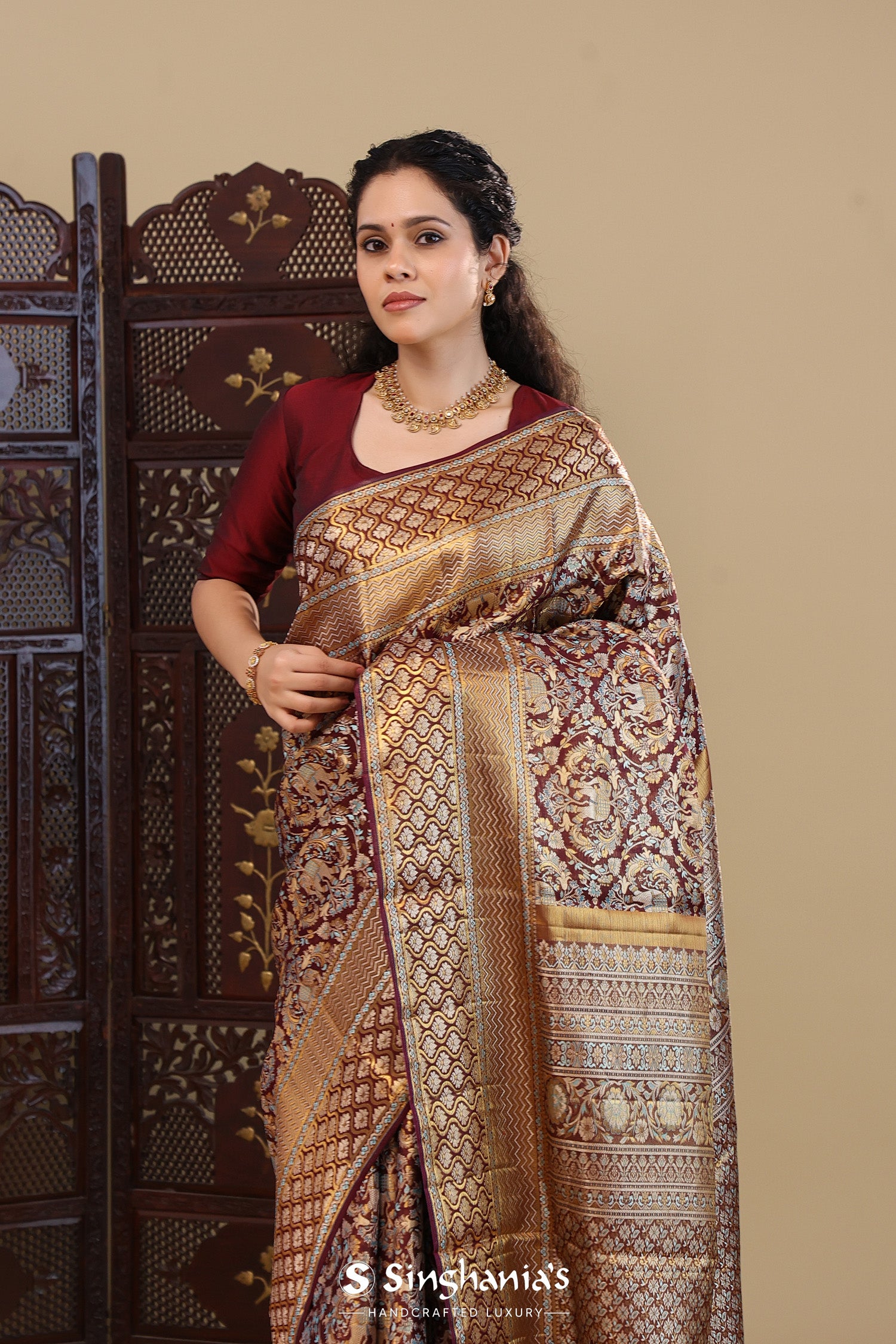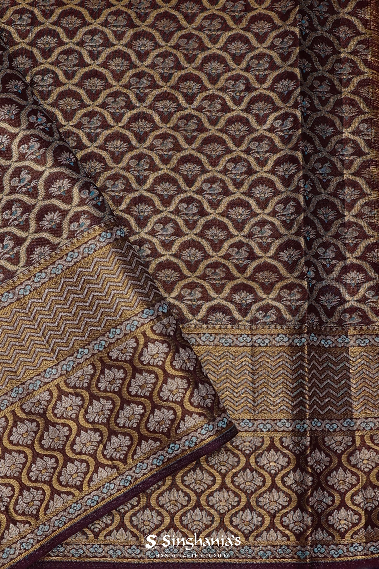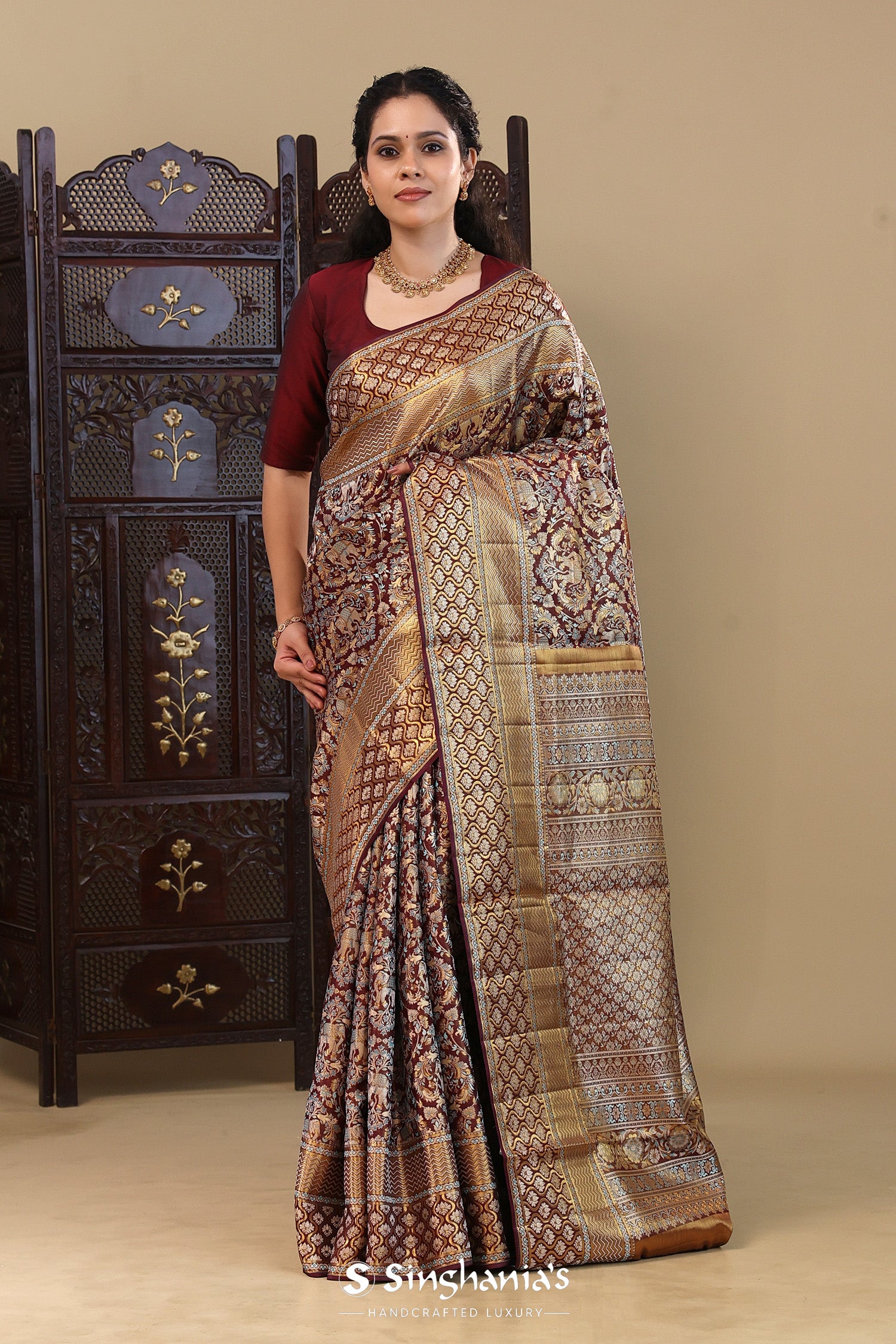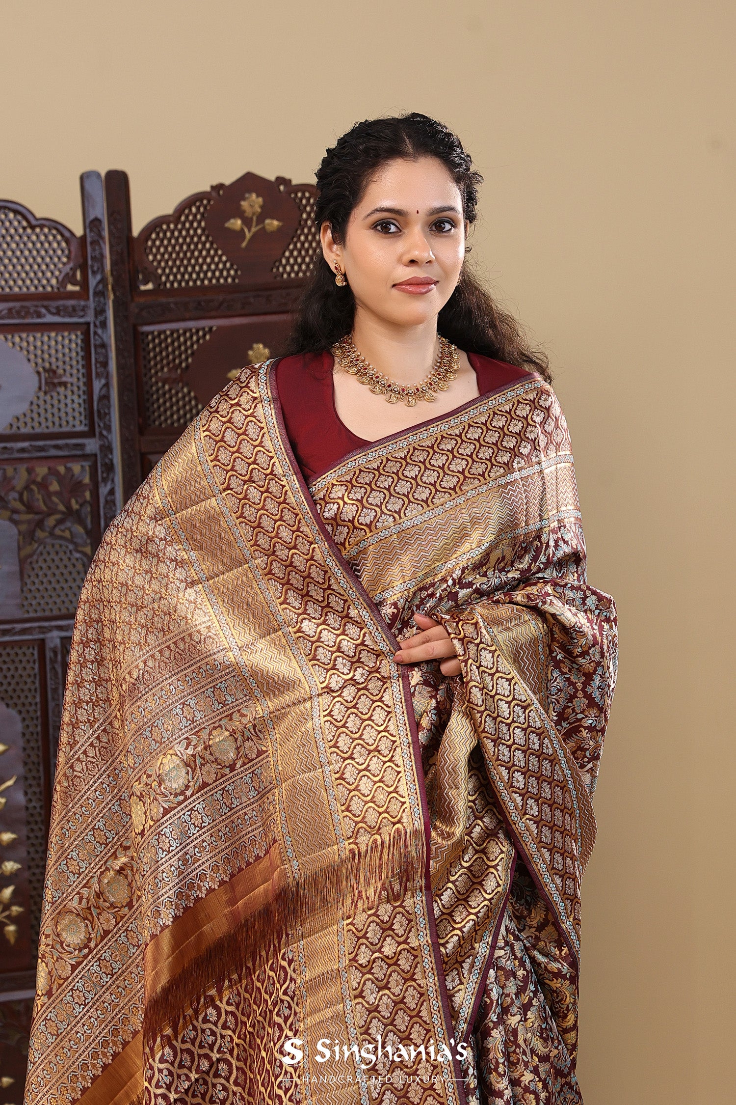 Rich Brown Kanjivaram Silk Saree With Zari Weave.