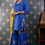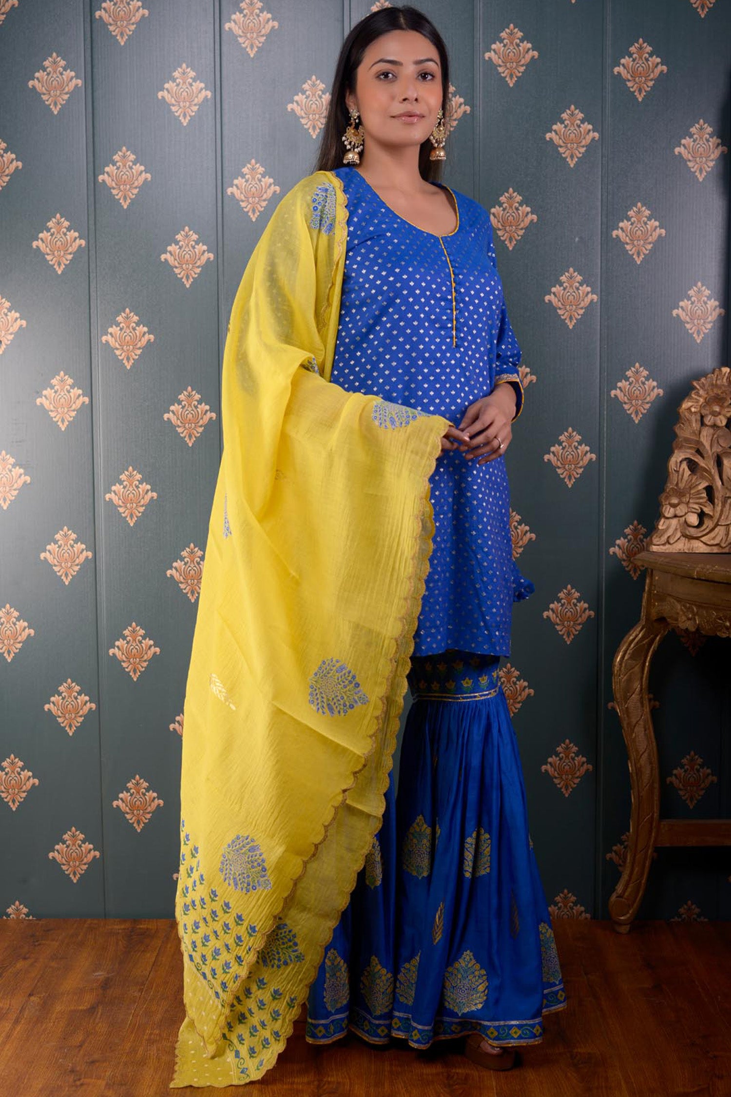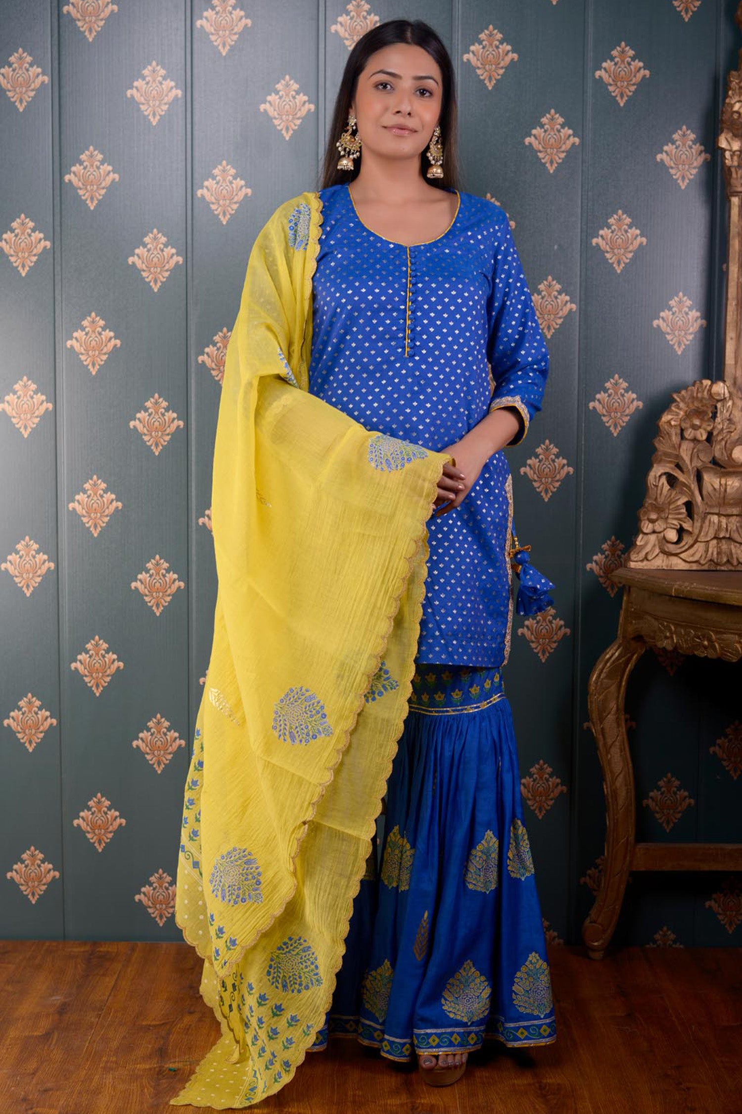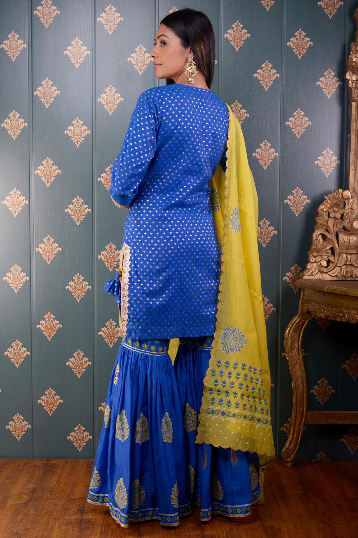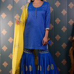 Royal Blue Banarasi Butti Chandary With Block Print Gharara Set