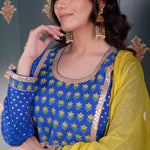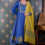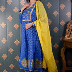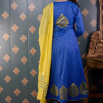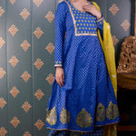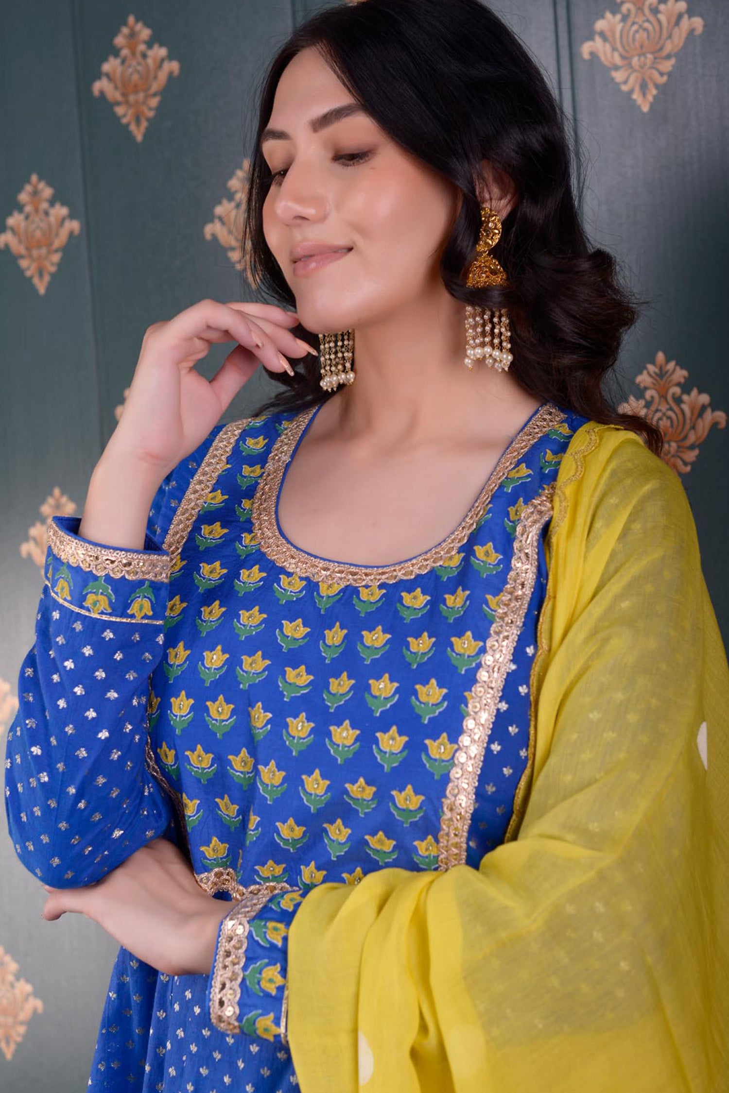 Royal Blue Butti Chandary With Block Print Kurti Set