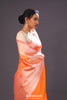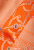 A stunning royal orange banarasi silk saree showcasing majestic floral motifs in meenakari and gold zari work. The grand border with geometric and floral patterns and rich pallu make it ideal for wedding functions and formal occasions.