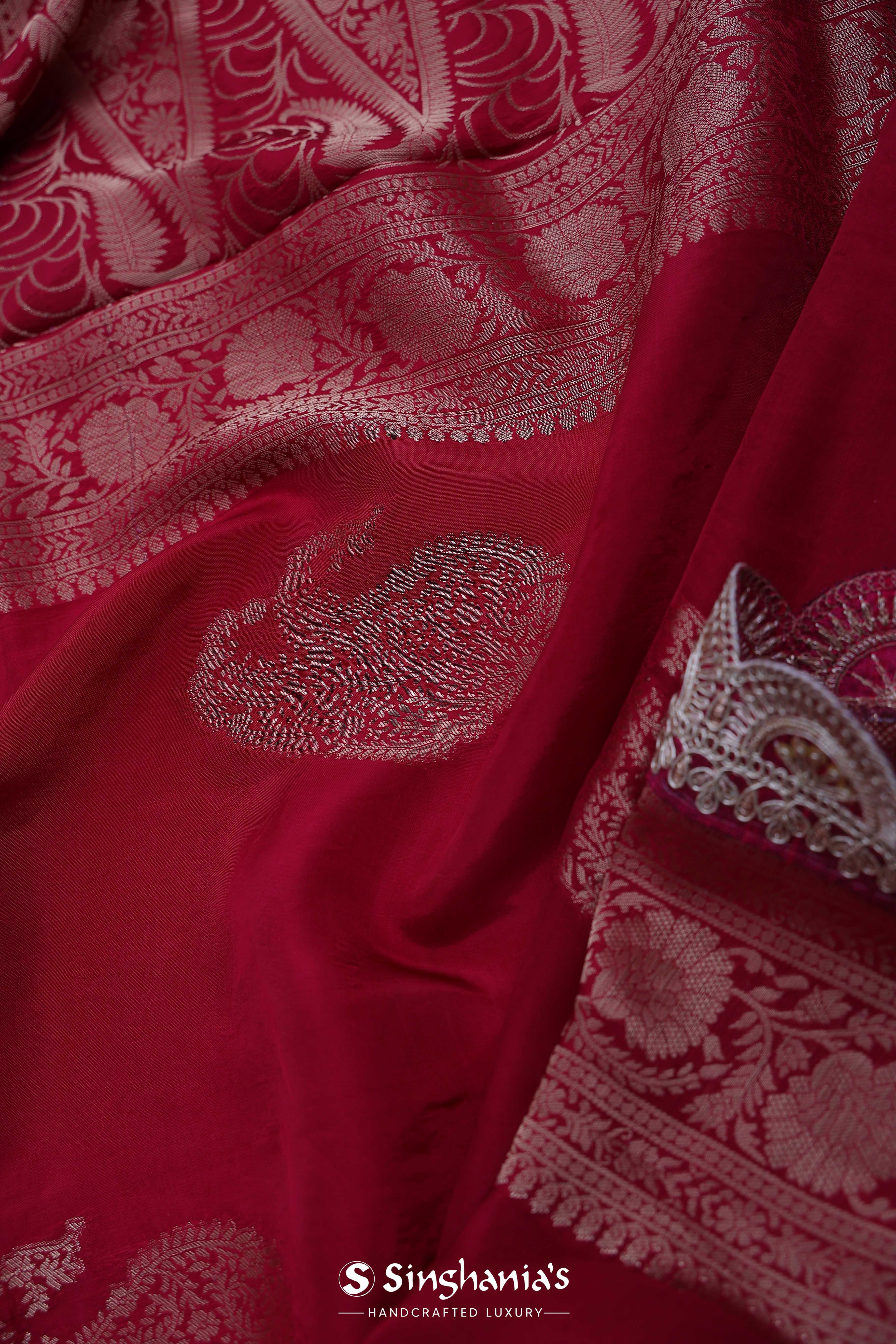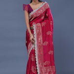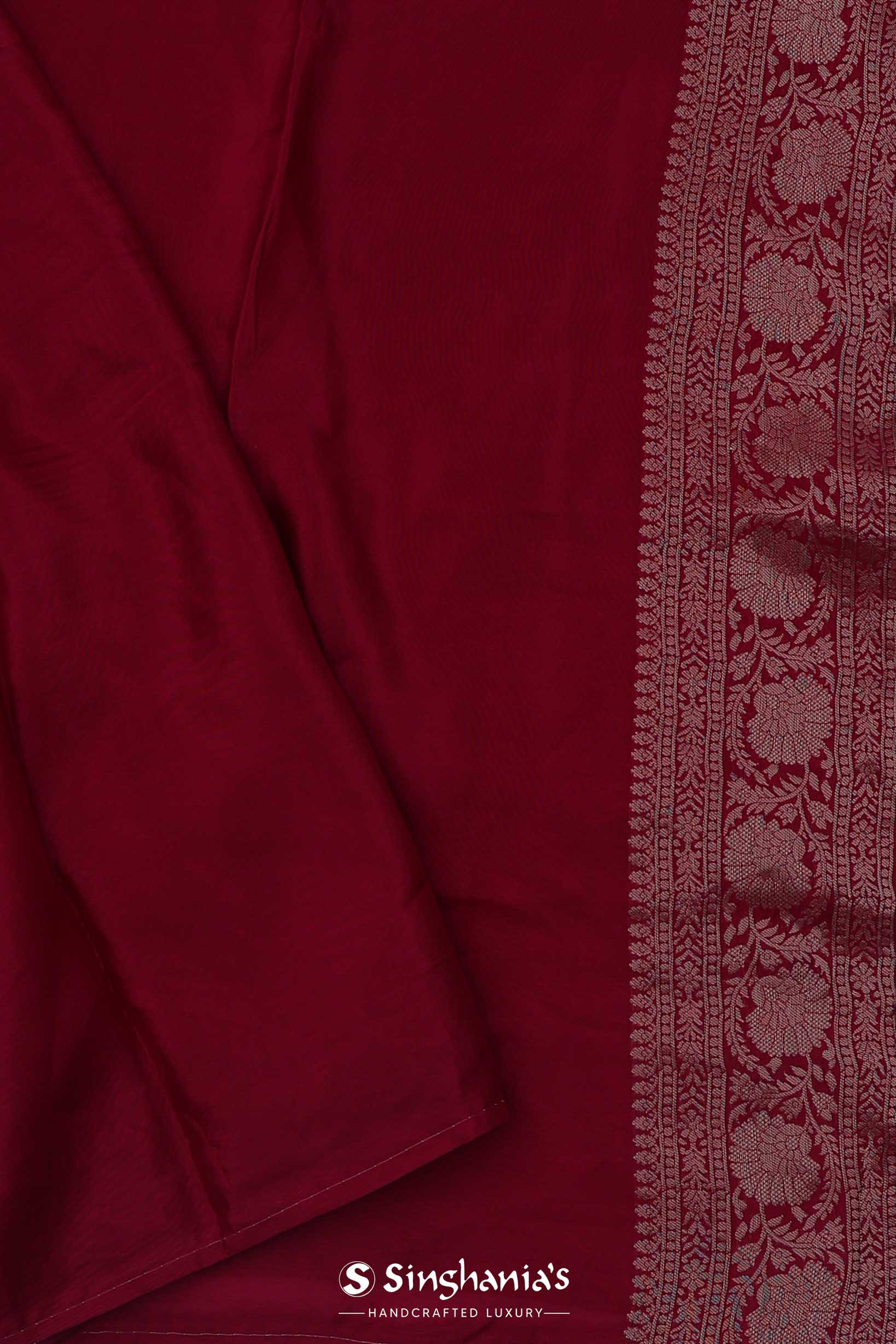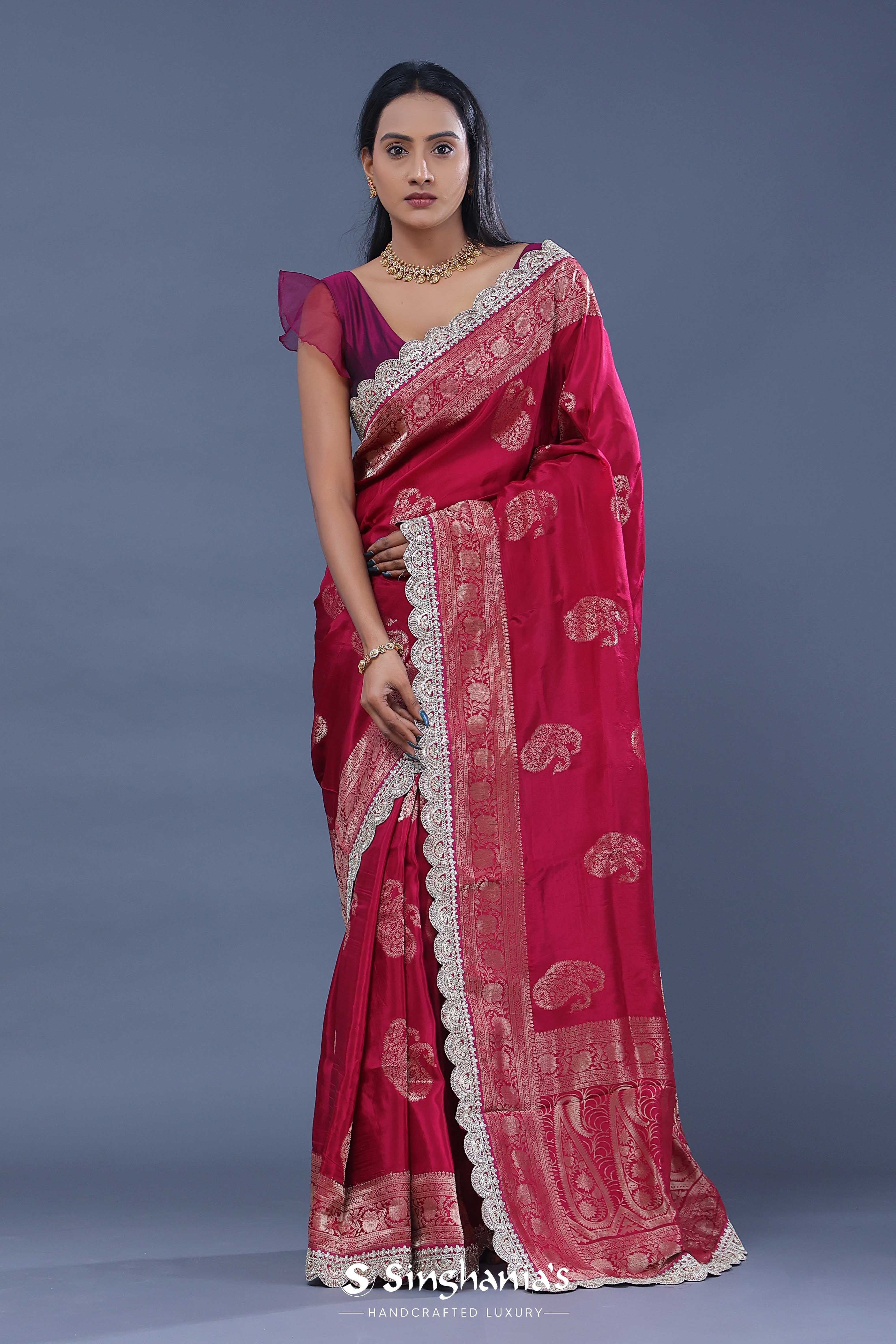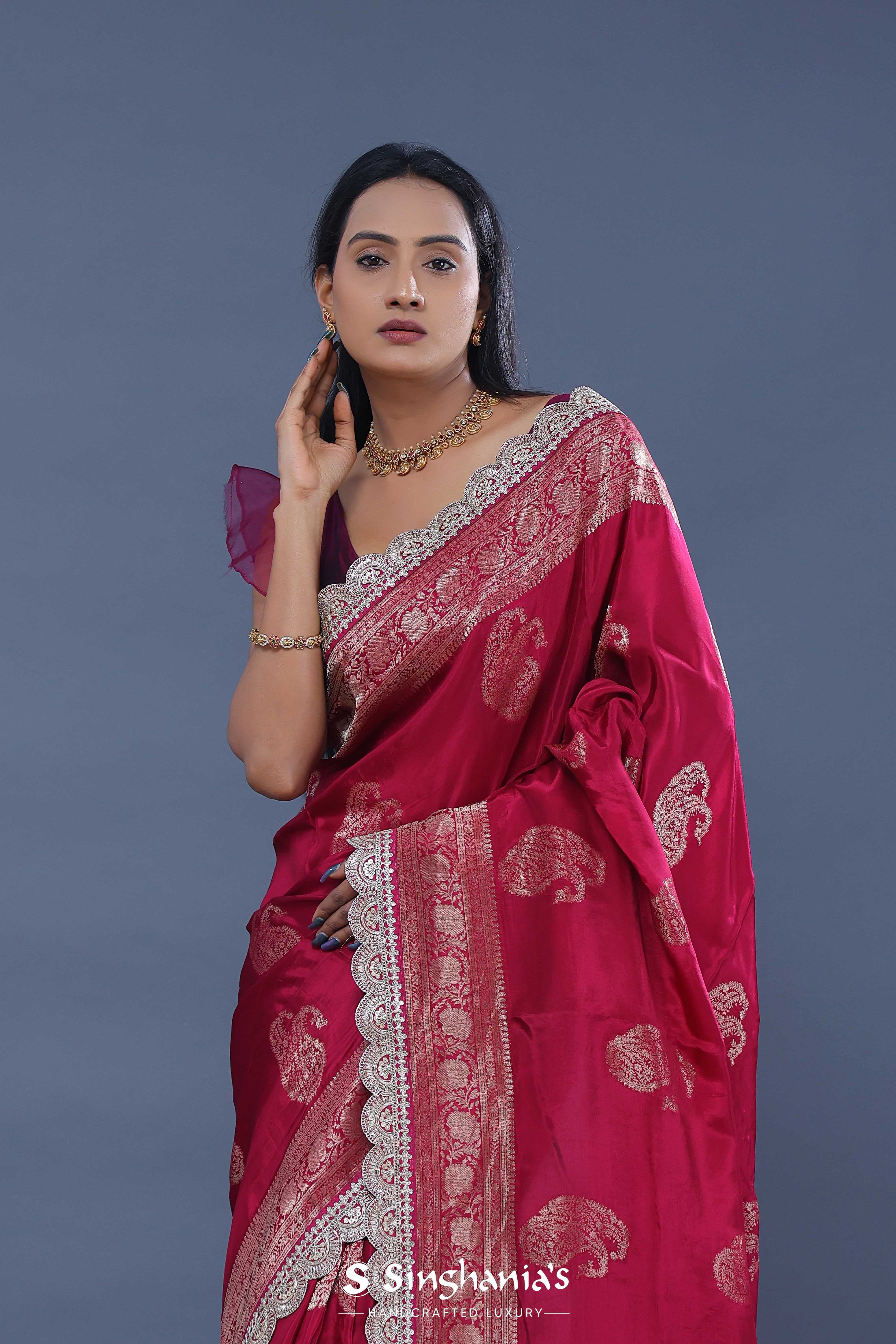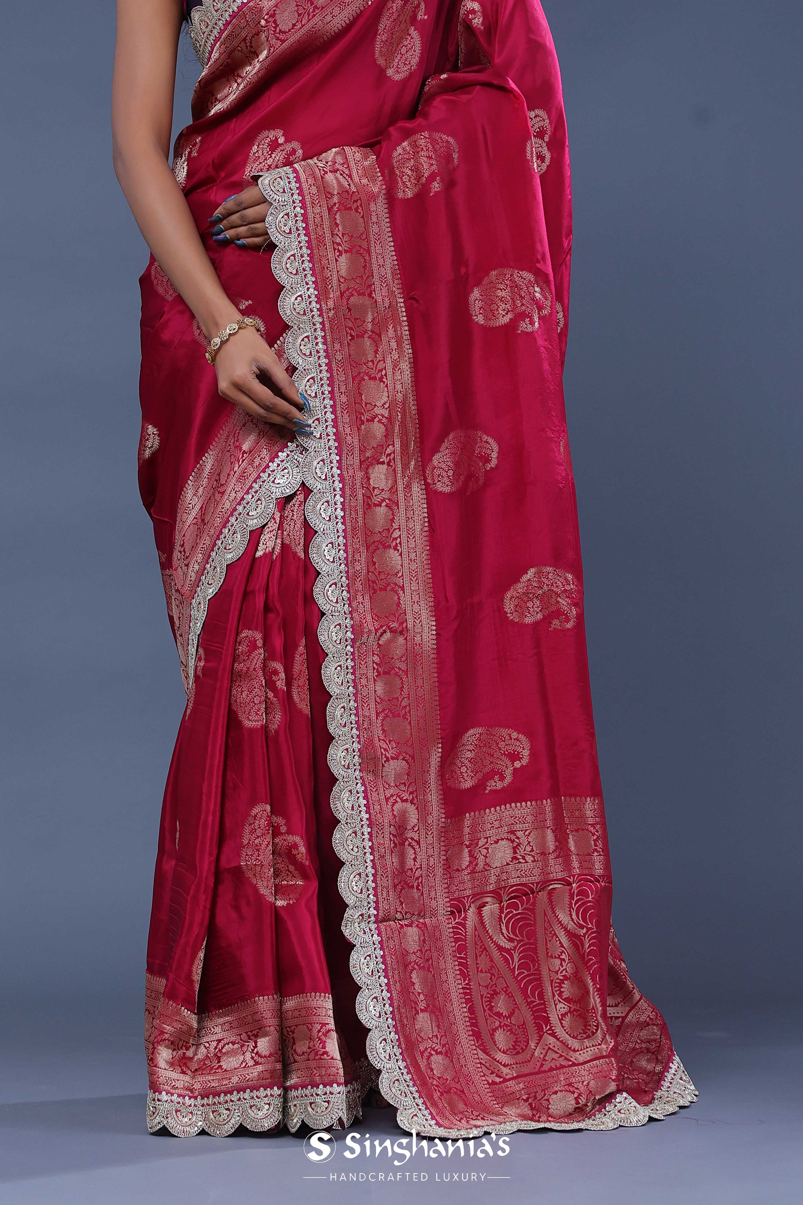Ruby Red Banarasi Saree With Scallop Border