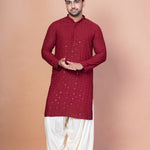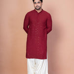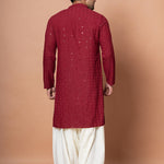 Ruby Red Cotton Blend Embroidered Kurta Set