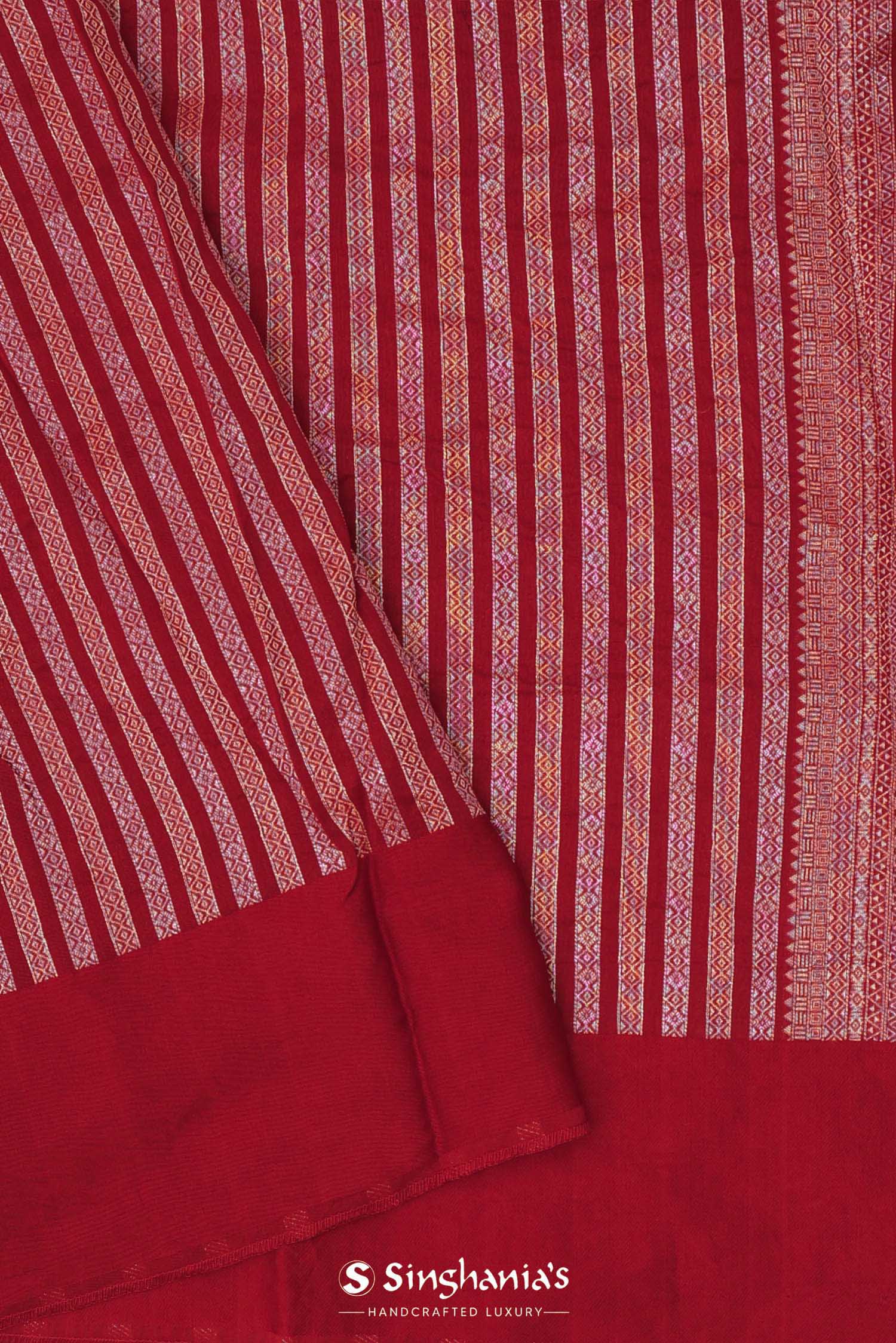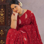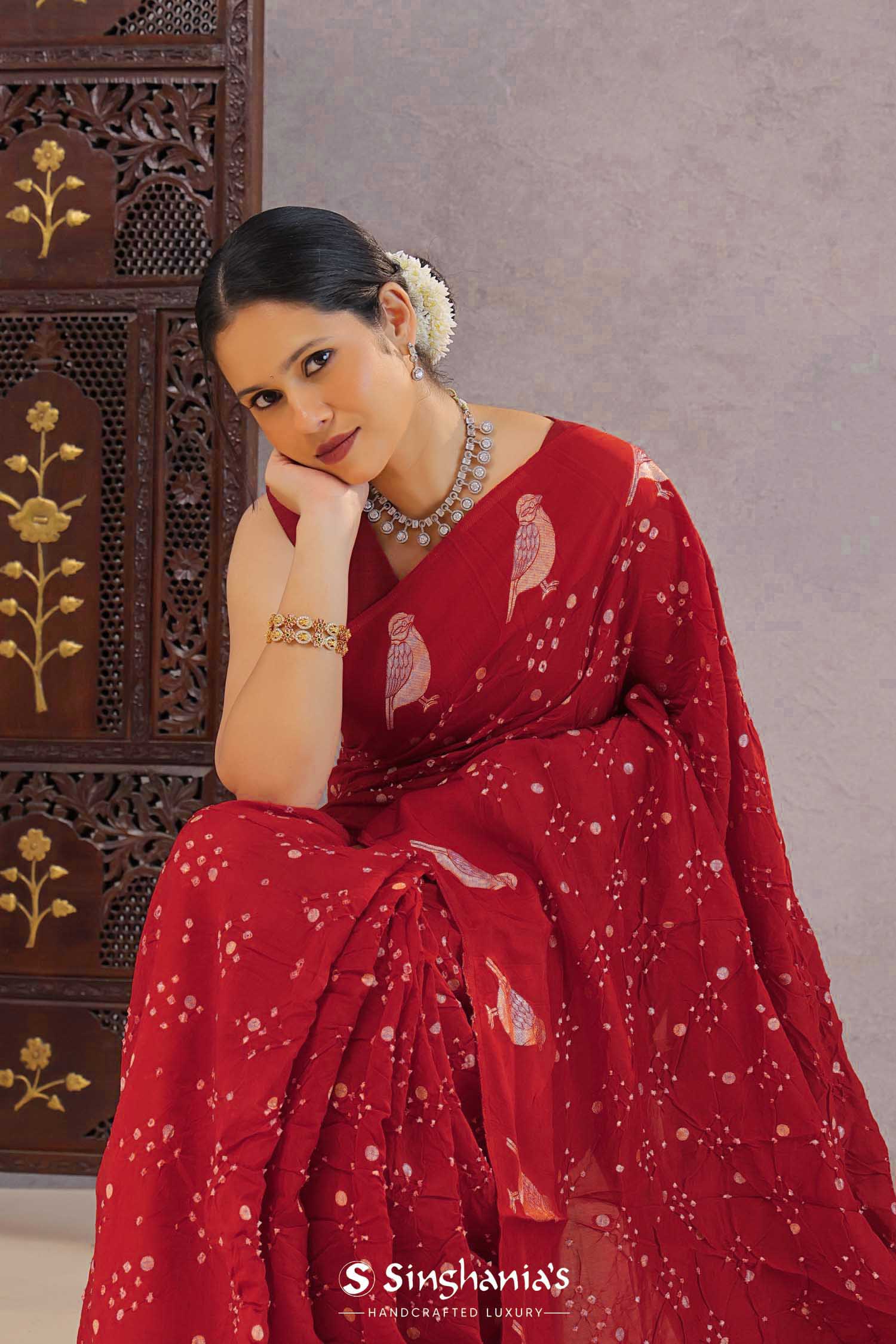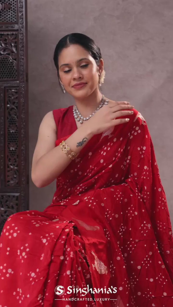 Saffron Red Silk Bandhani Saree