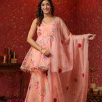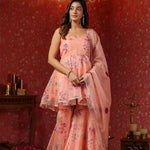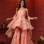 Salmon Pink Organza Floral Sharara Set