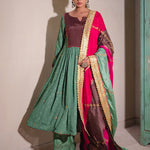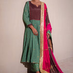 Sea Green And Multicolour Chinon Suit And Palazzo Set