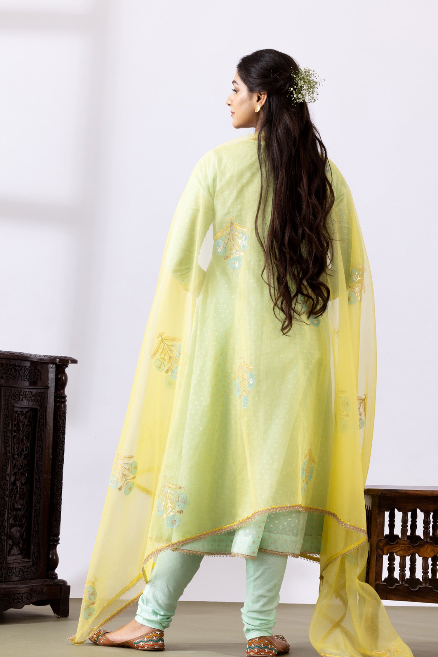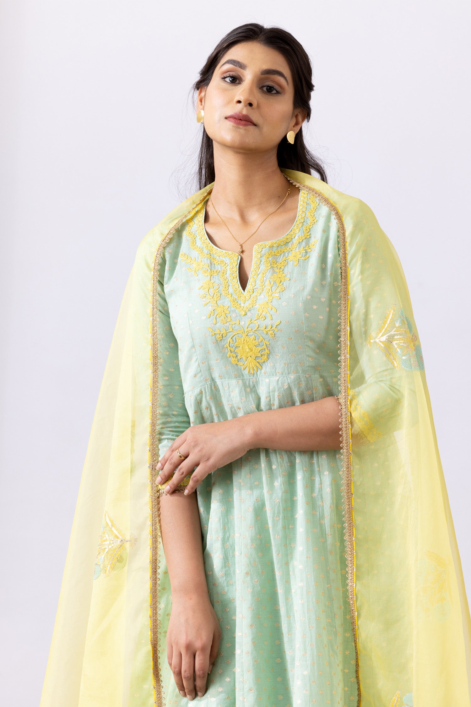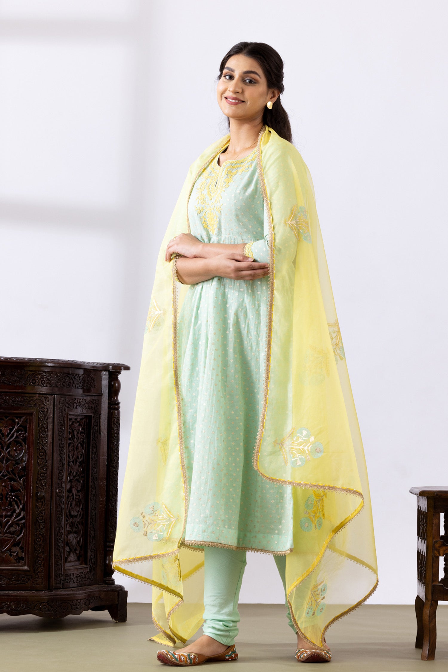 Sea Green Dori Embroidery Chanderi Anarkali Churidar Set