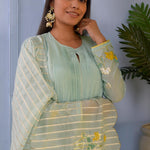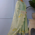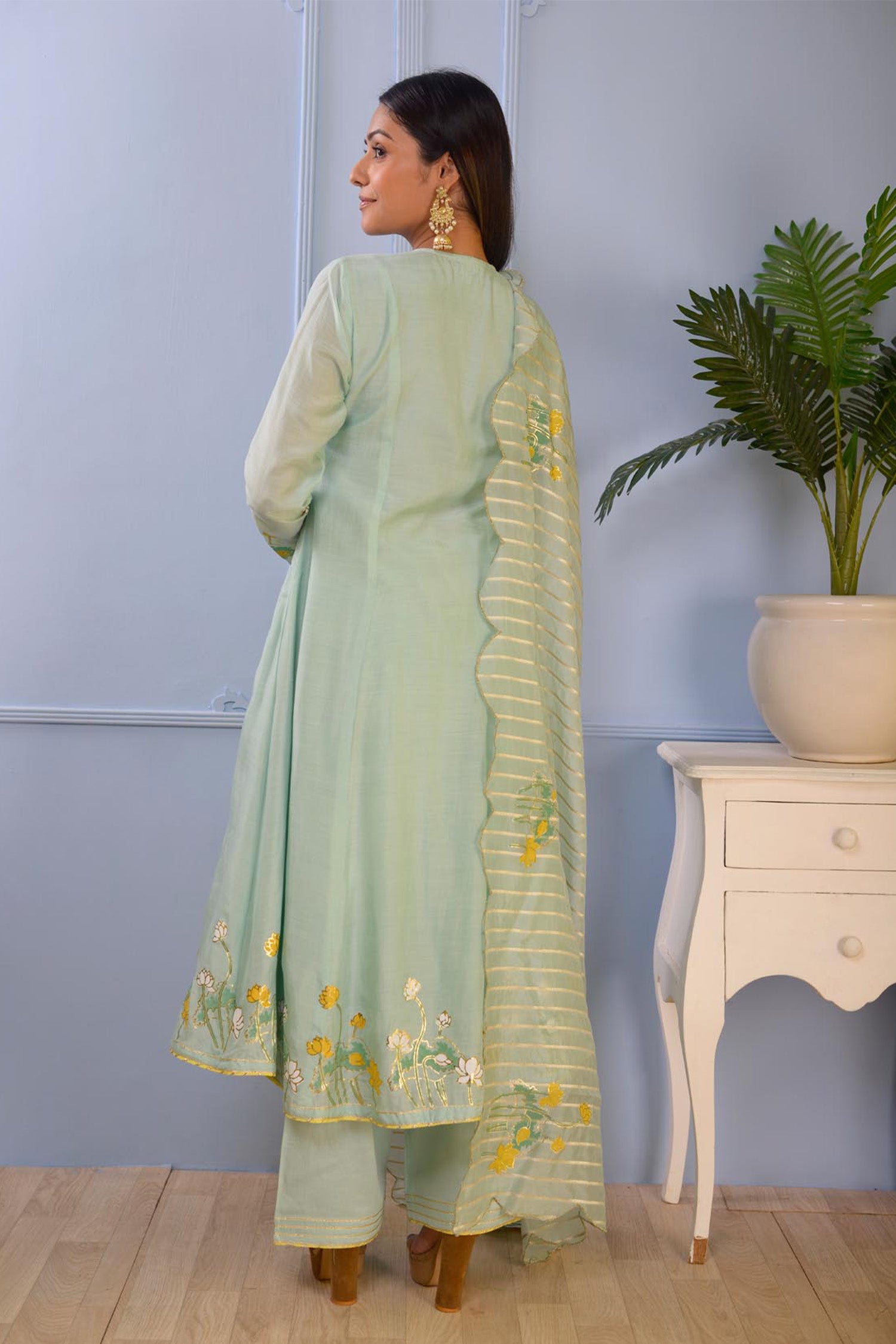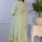 Sea Green Foil Printed Cotton Silk Anarkali Set