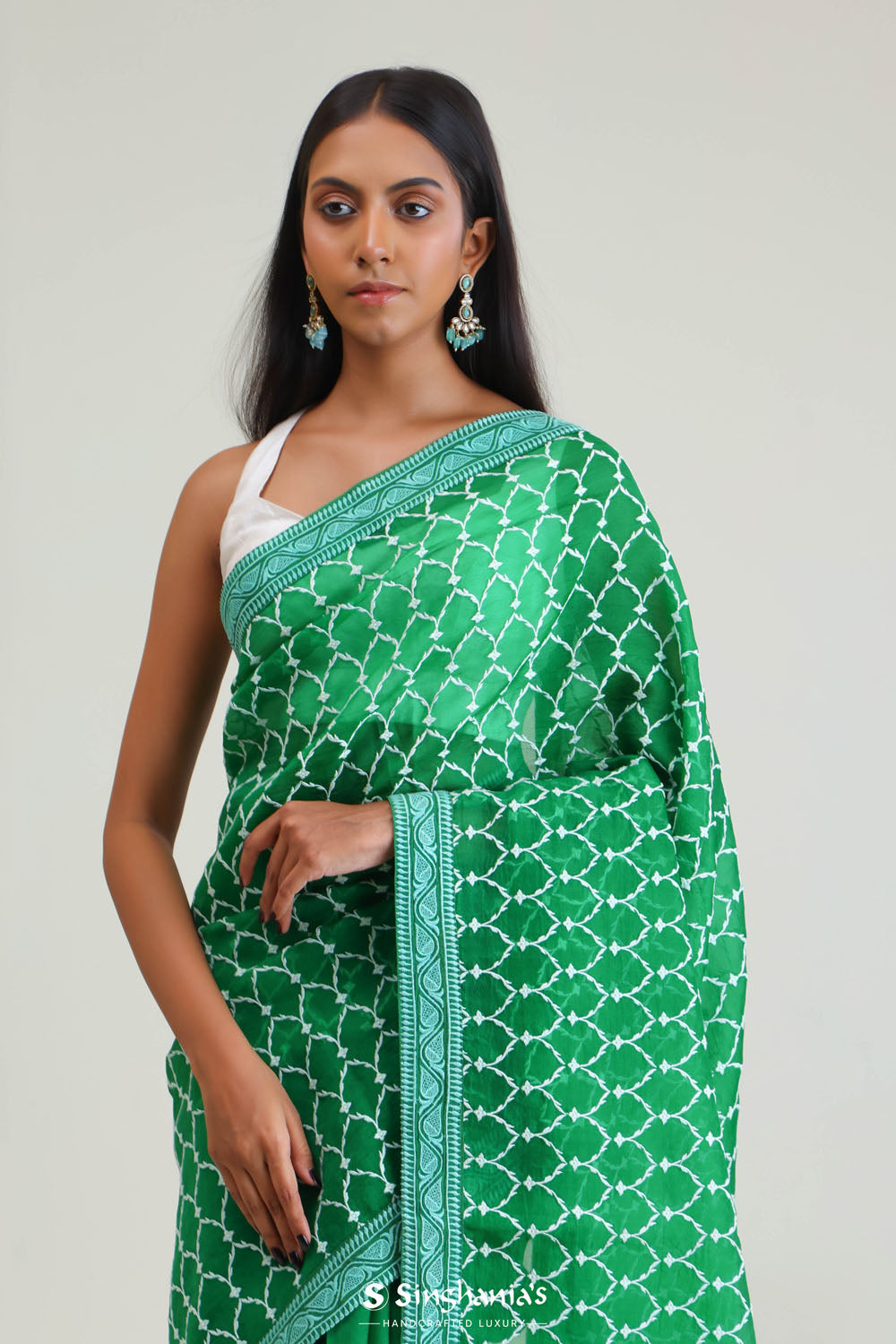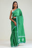A beautiful sea green saree with an organza base, which features arch jaali embroidered pattern. Added with intricately embroidered attached border and pallu,that adds to the whole look. It’s an excellent choice for festivals, receptions and grand celebrations.