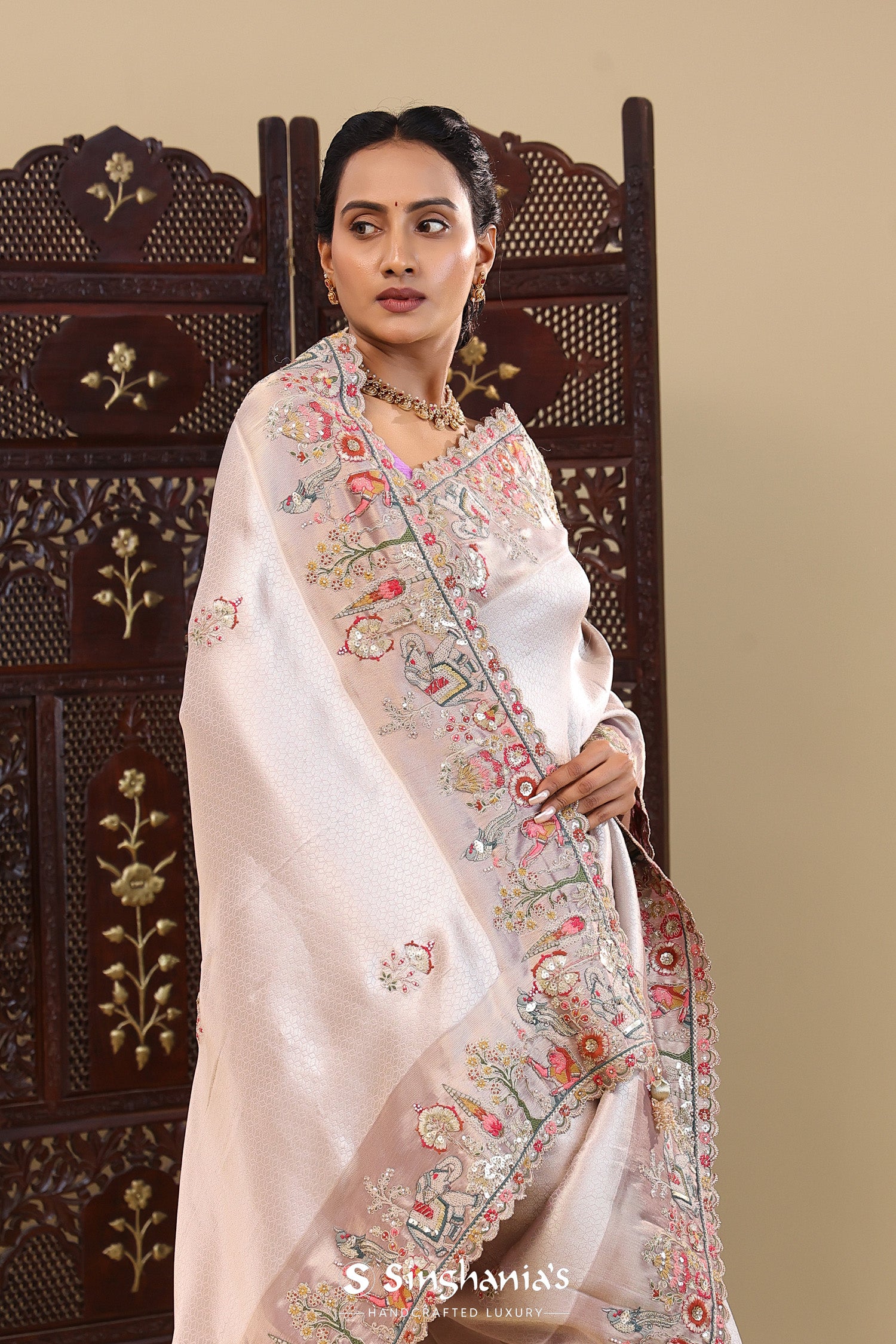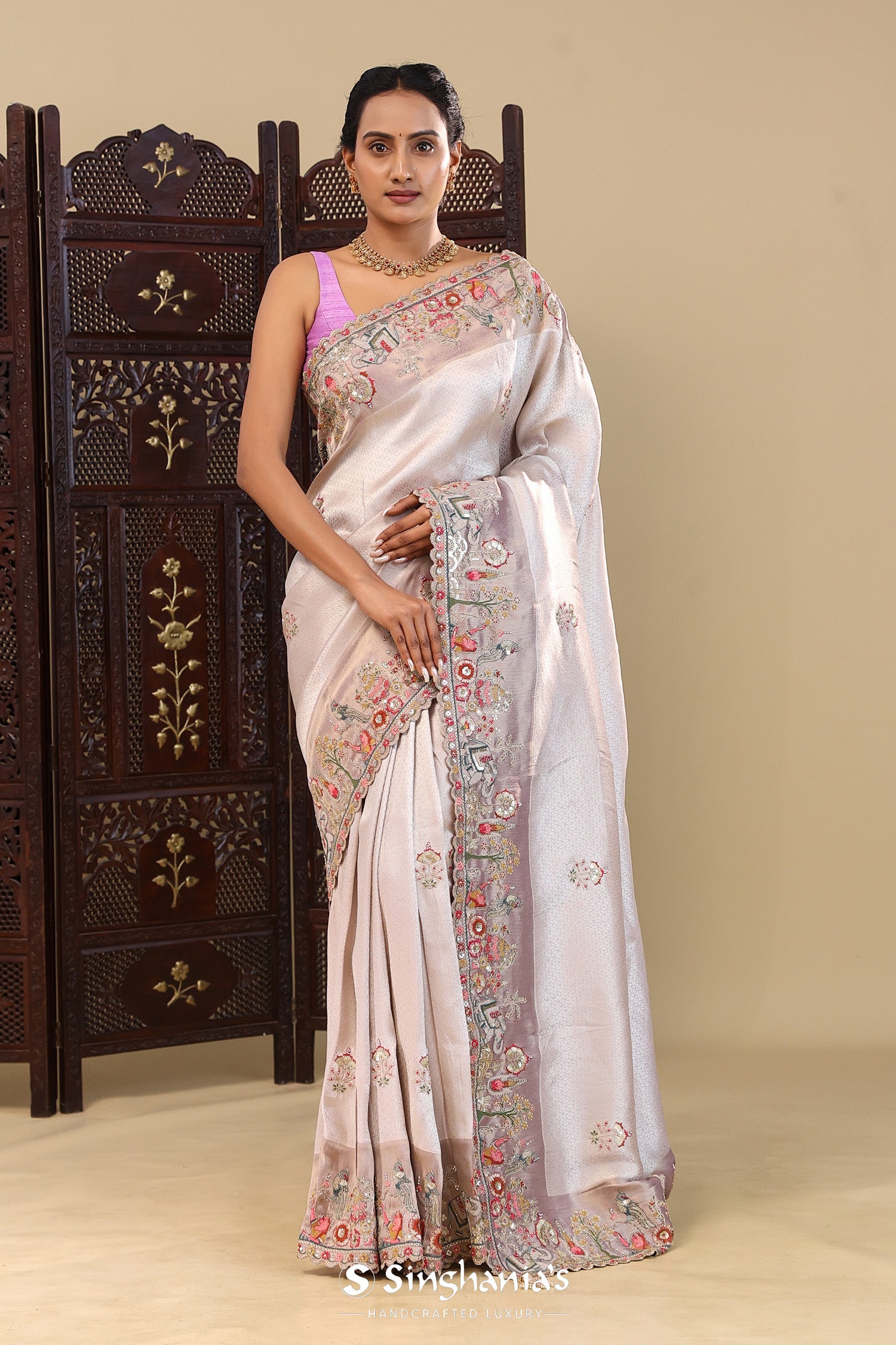 Pair with minimal jewellery and soft makeup to highlight the timeless elegance Singhaniaβs is known for.