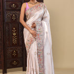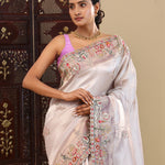 Silver Tissue Saree With Scallop Border