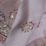 This silver brocade woven body adorned with zari embroidered butti's scattered on the entire body complemented with contrast scallop border