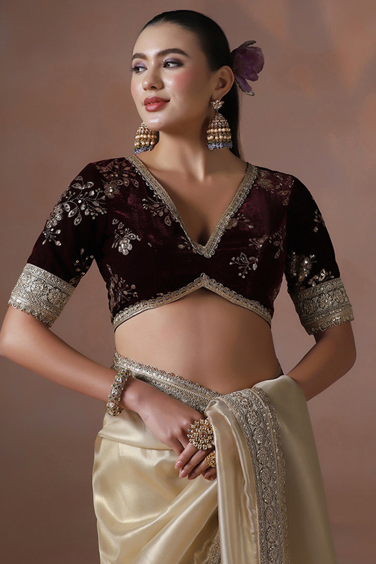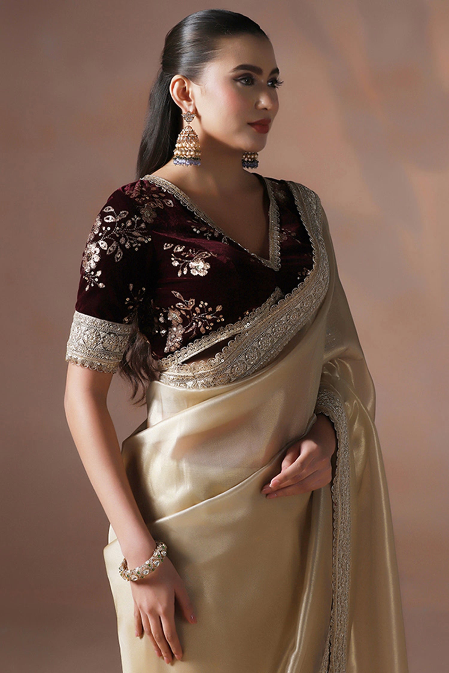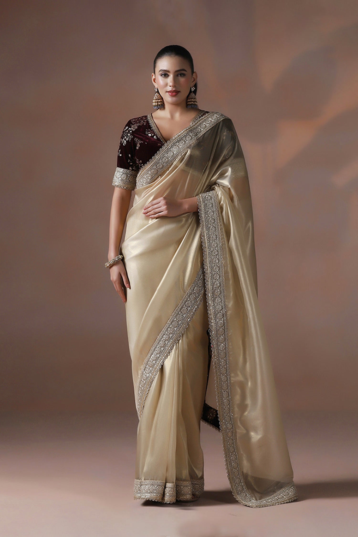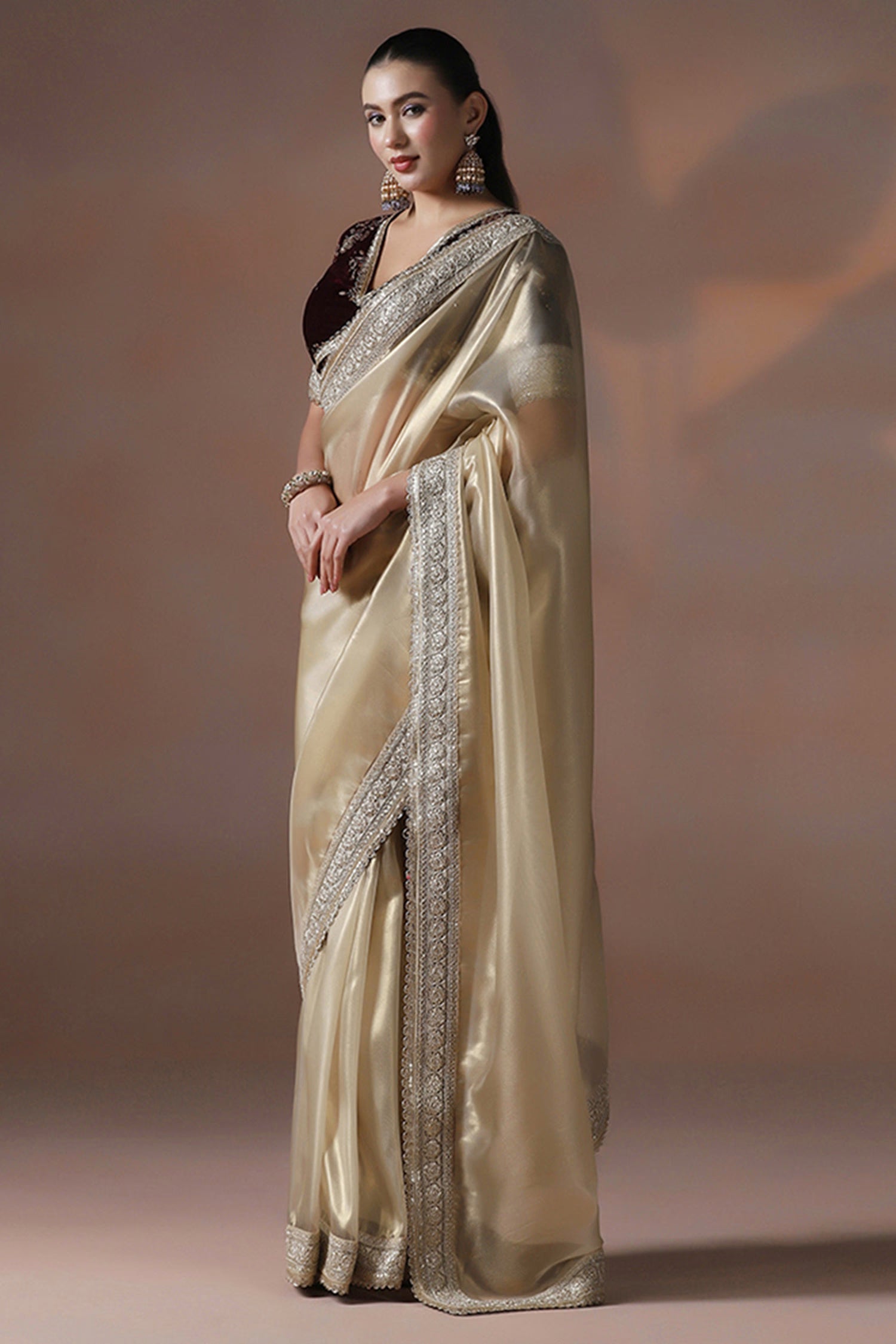 Pair with minimal jewellery and soft makeup to highlight the timeless elegance Singhaniaβs is known for.