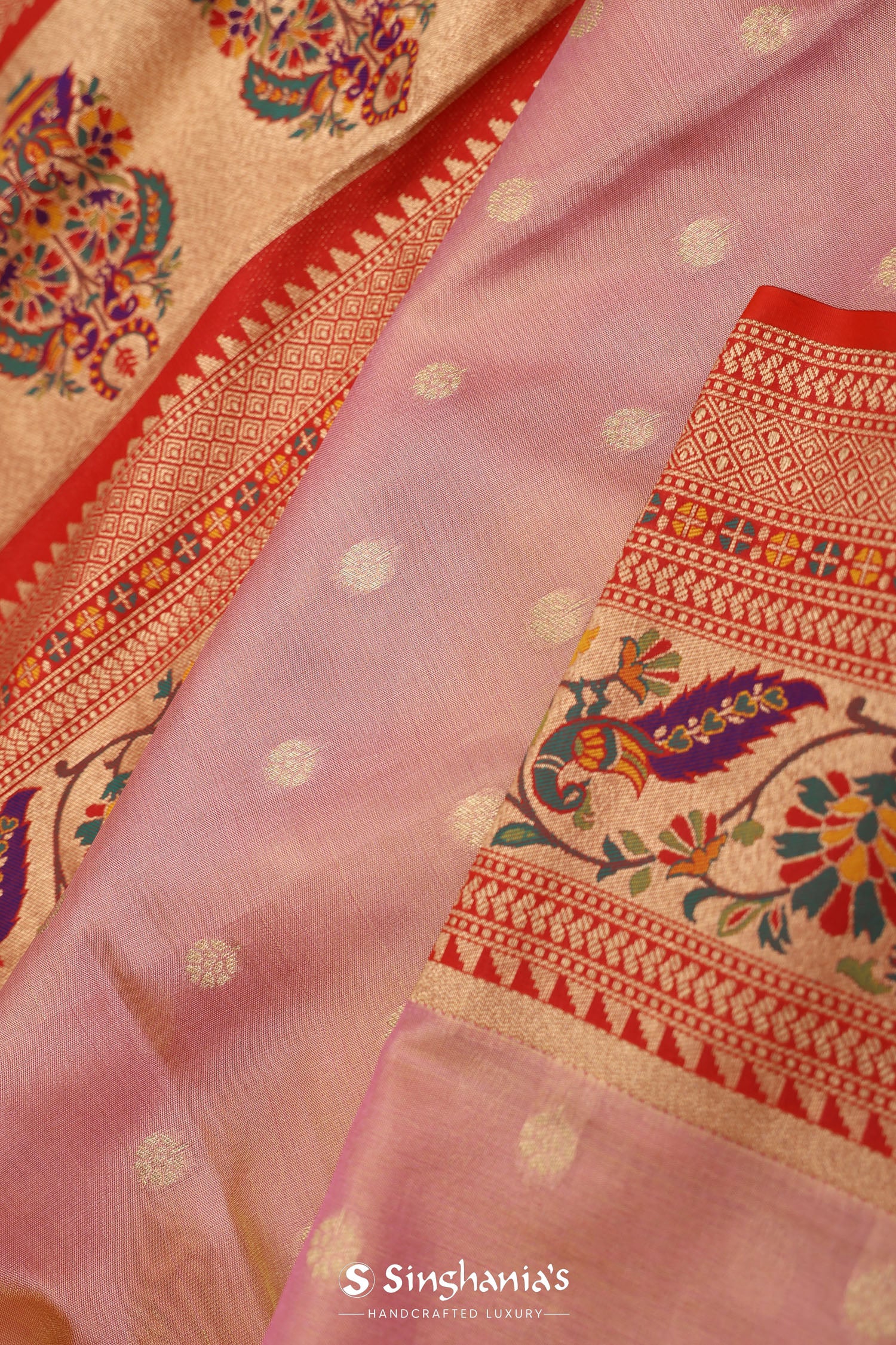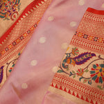 Soft Pink Paithani Tissue Saree With Contrast Border
