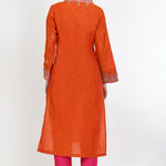 Tangerine Orange Art Silk Embroidered Kurti Set