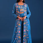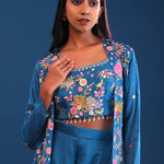 Teal Blue Crepe Silk Indo Western Choli Set
