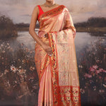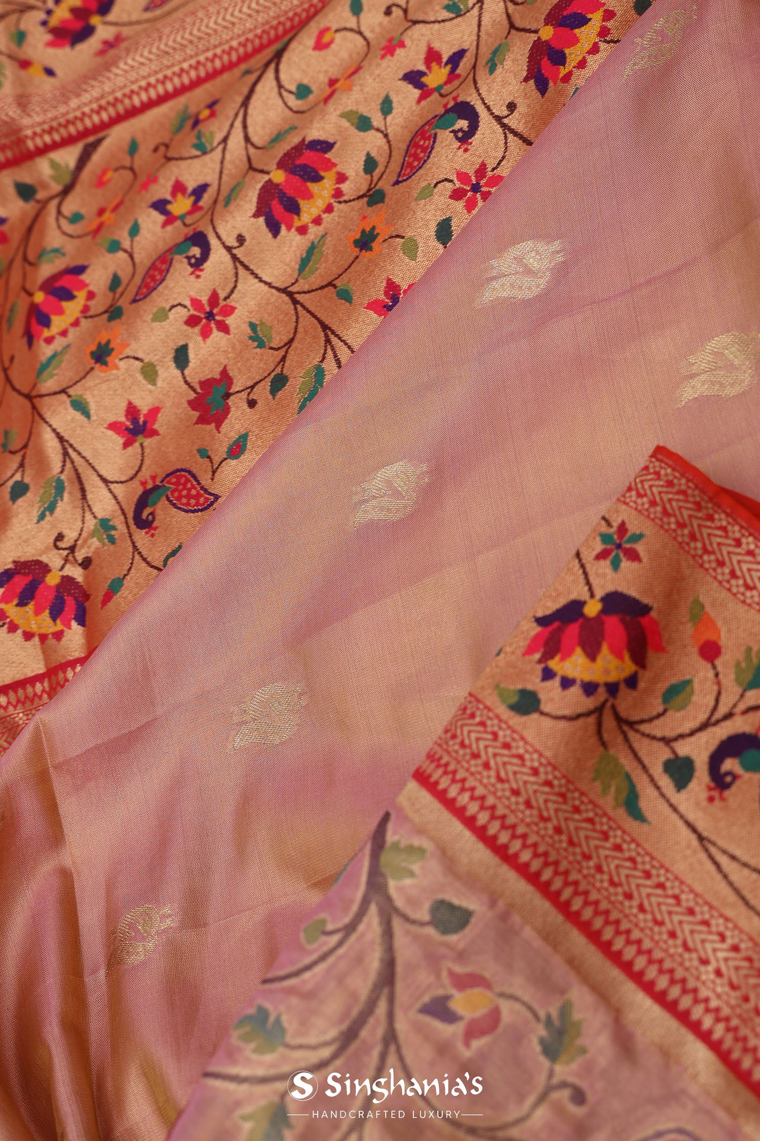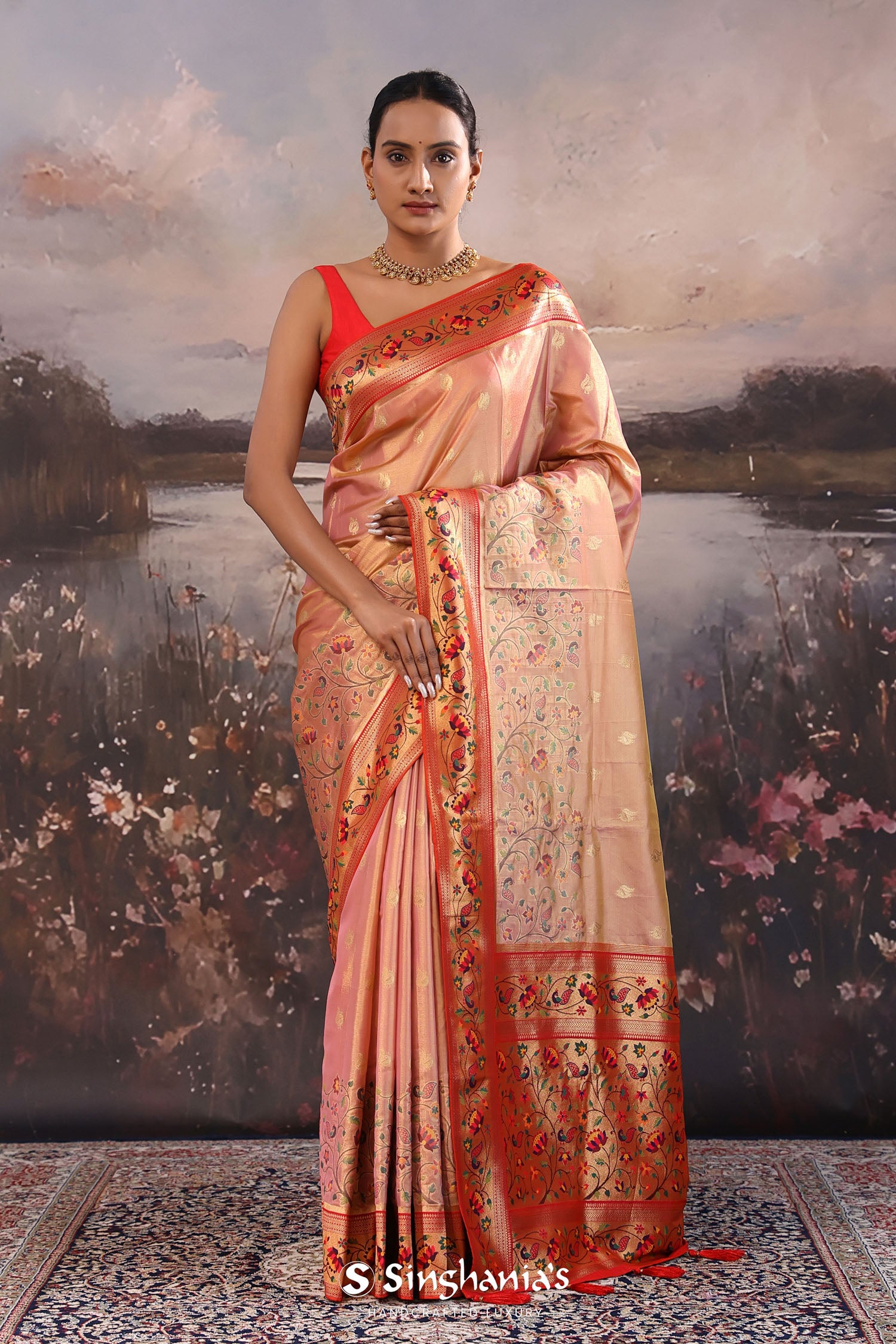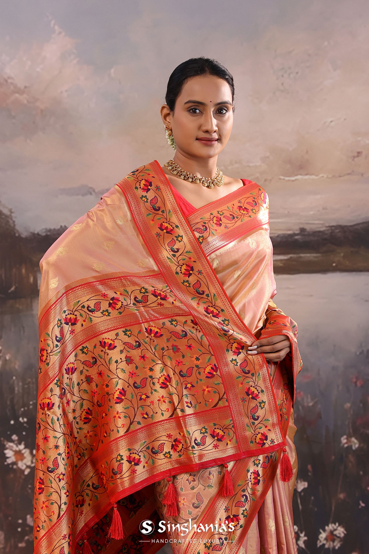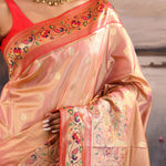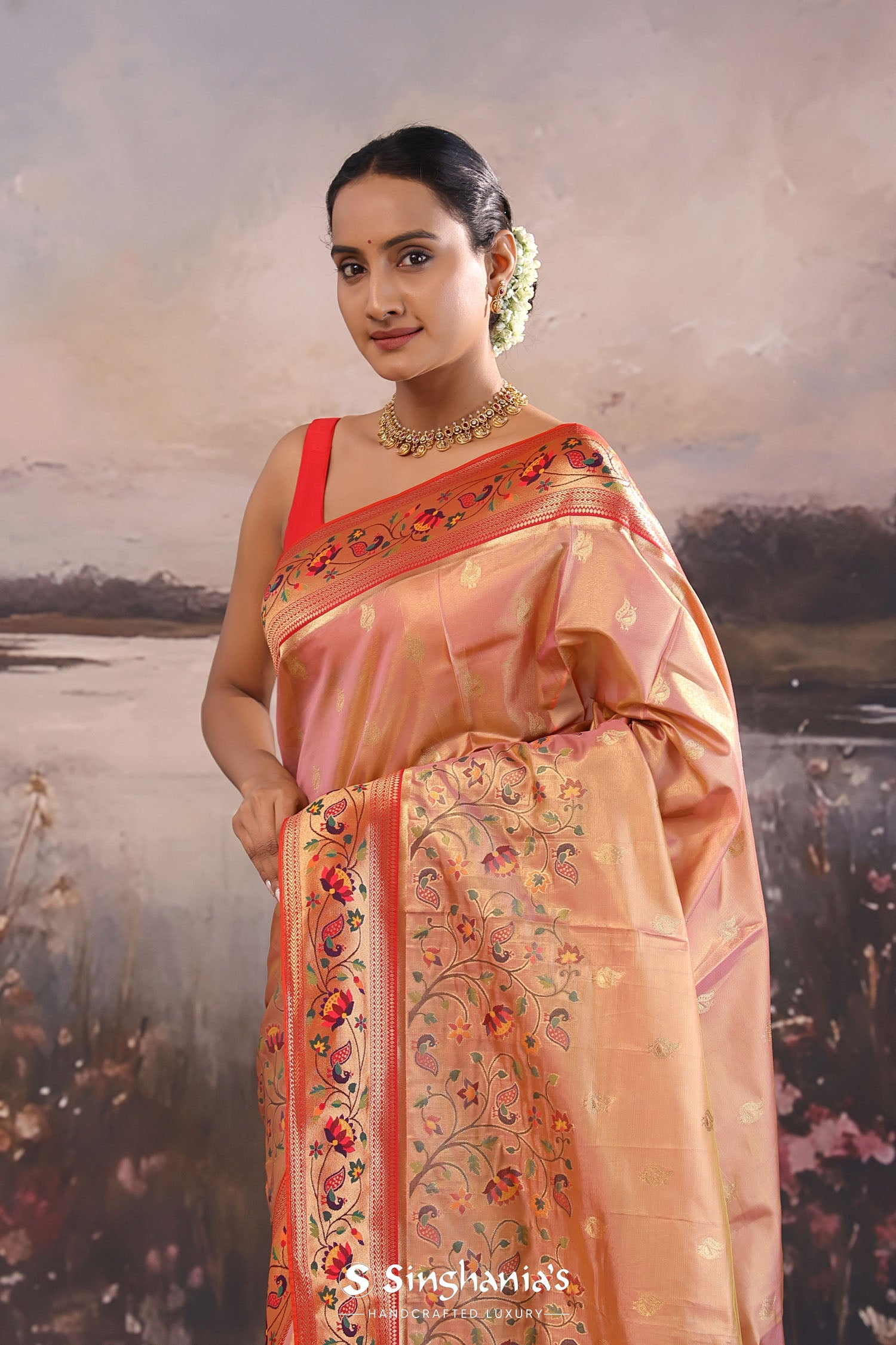 Turkish Pink Paithani Tissue Saree With Contrast Border