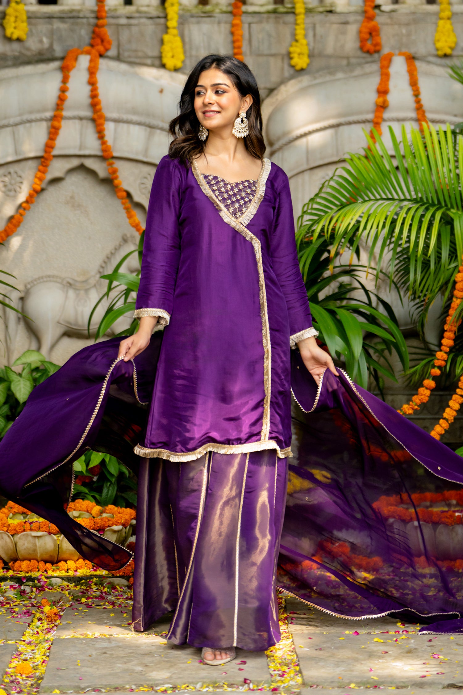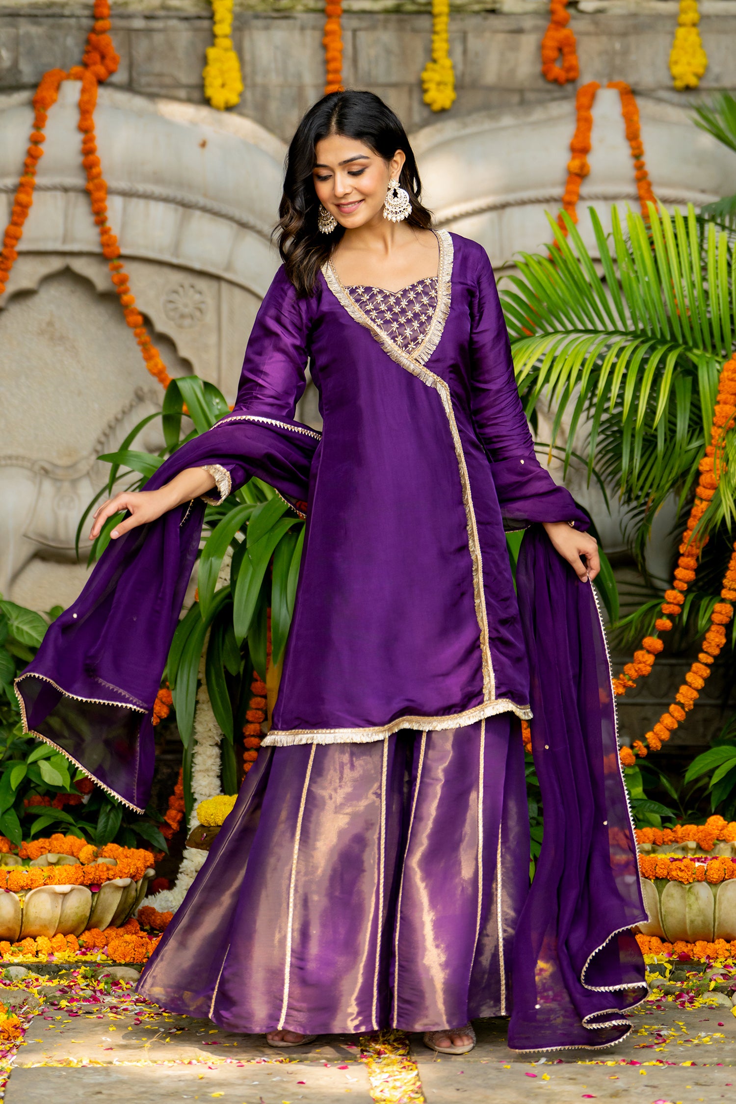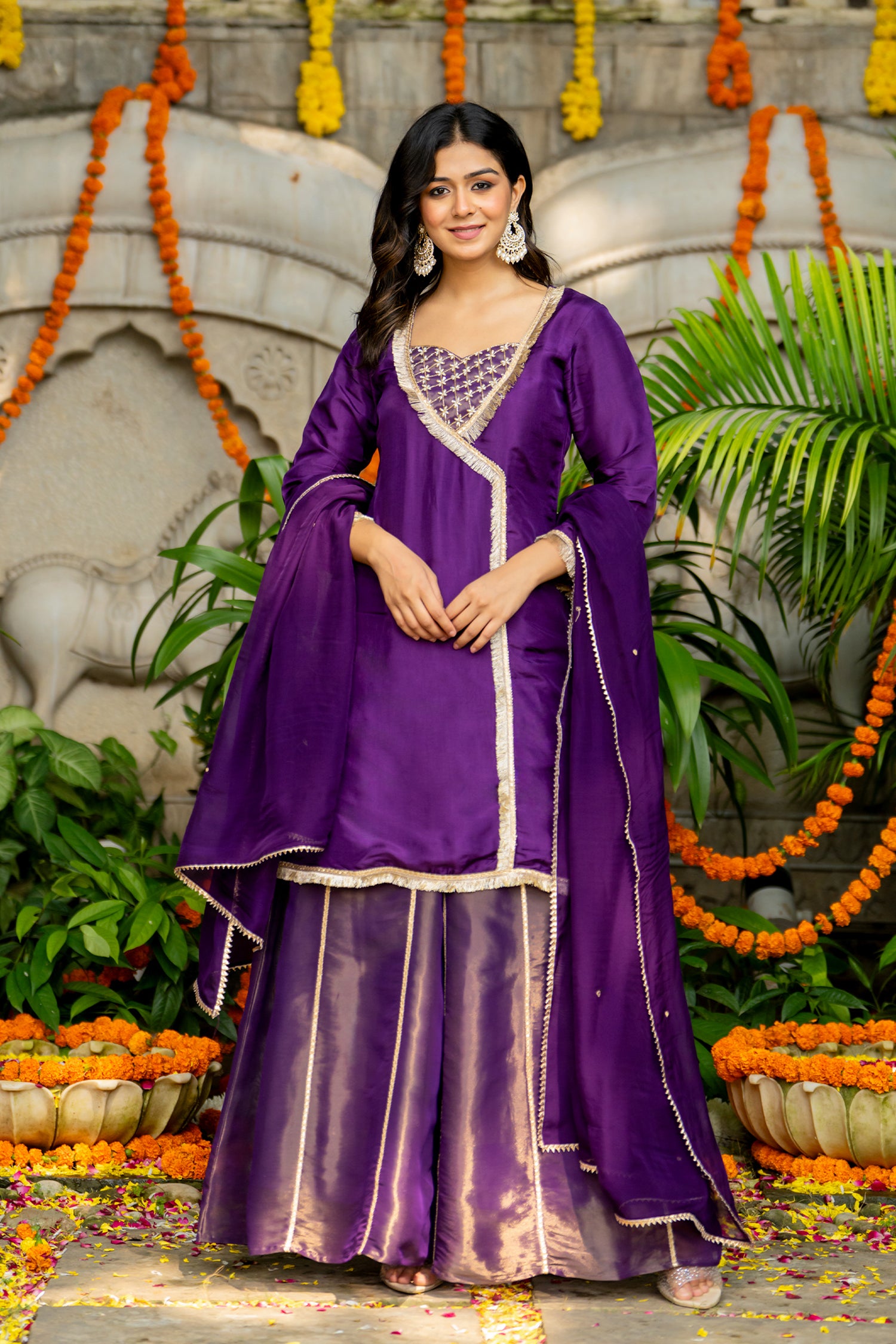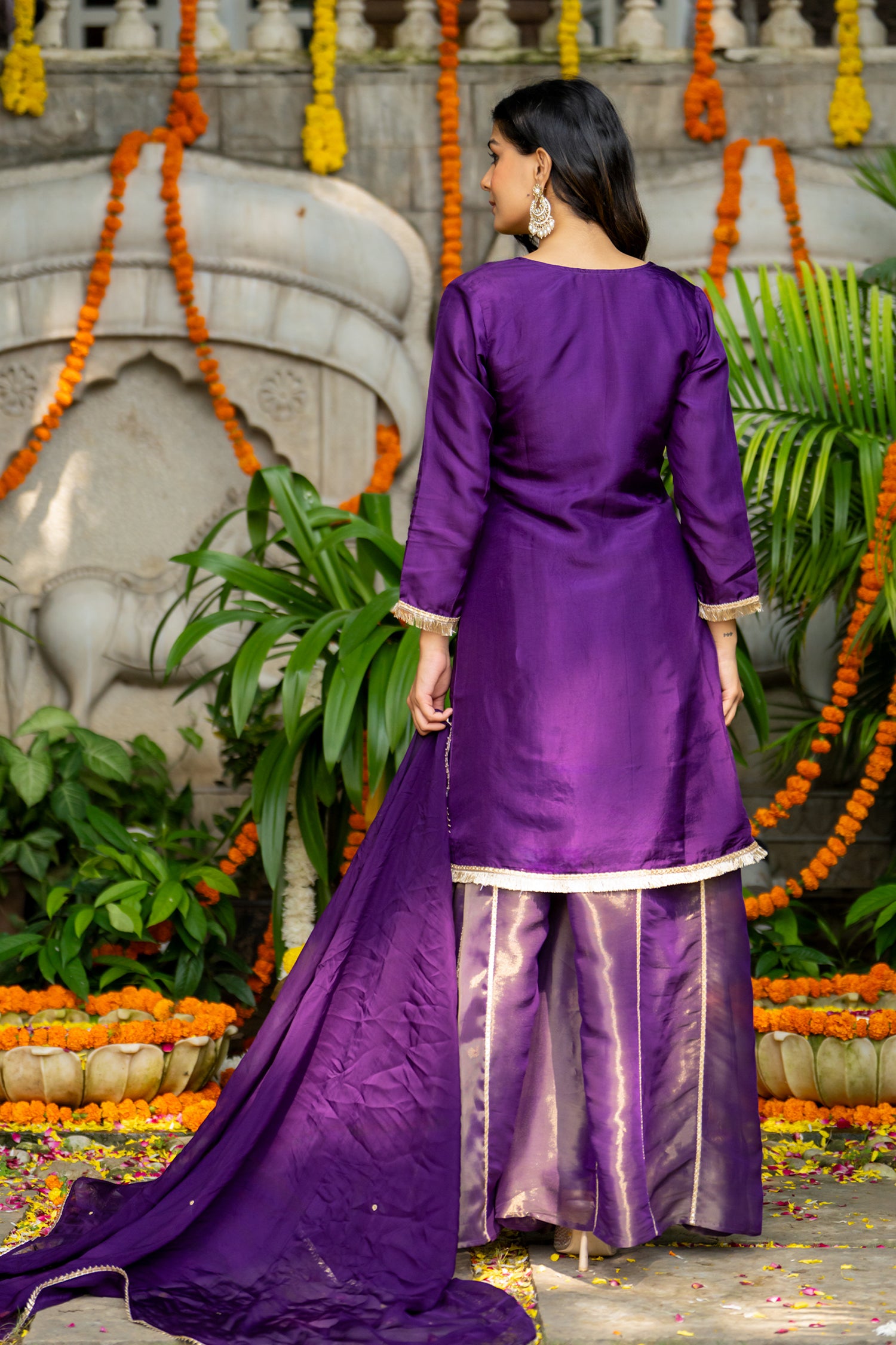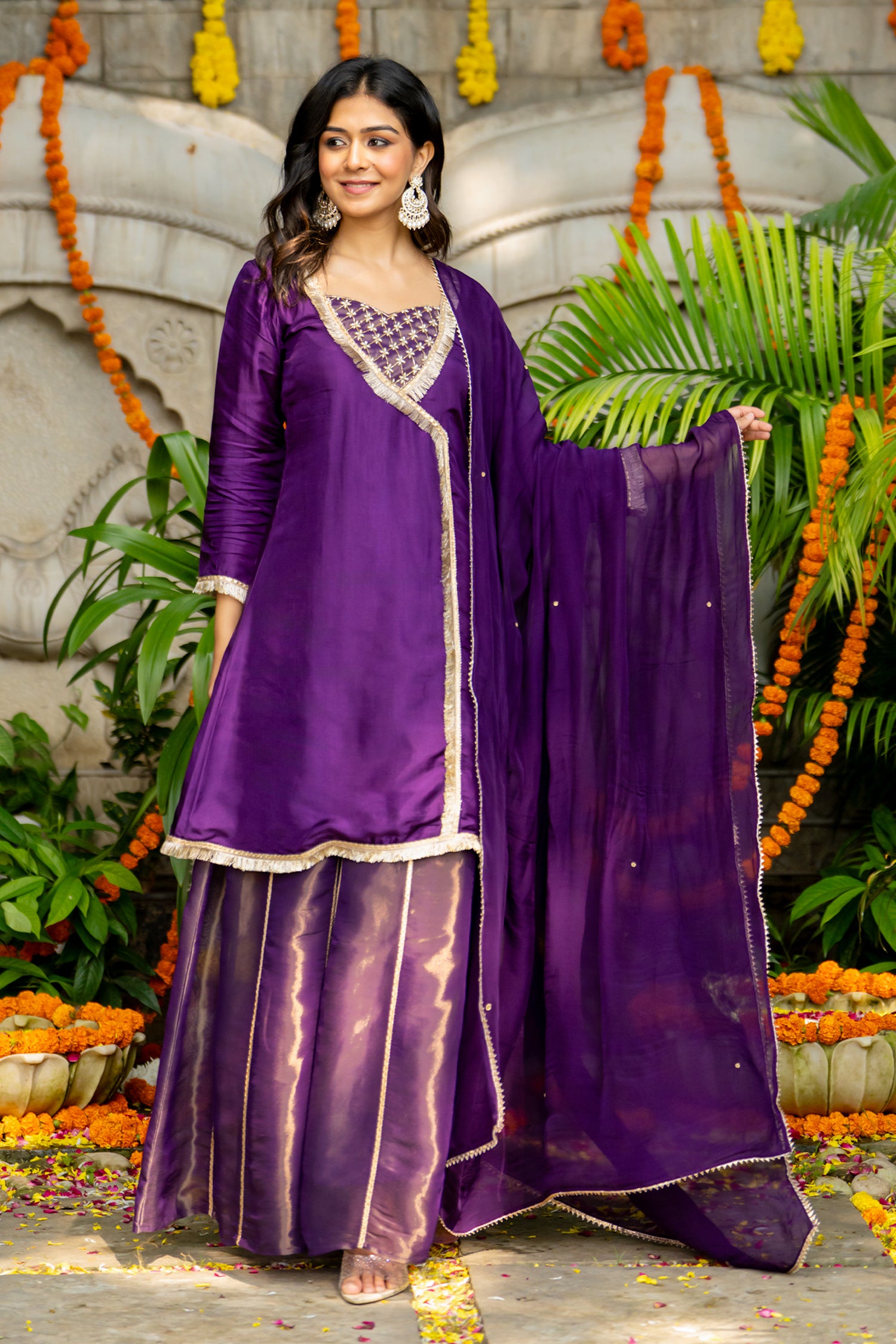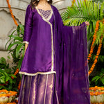 The gorgeous violet uppada silk solid kurti set with tissue bottom and dupatta for an elegant and charming look.
