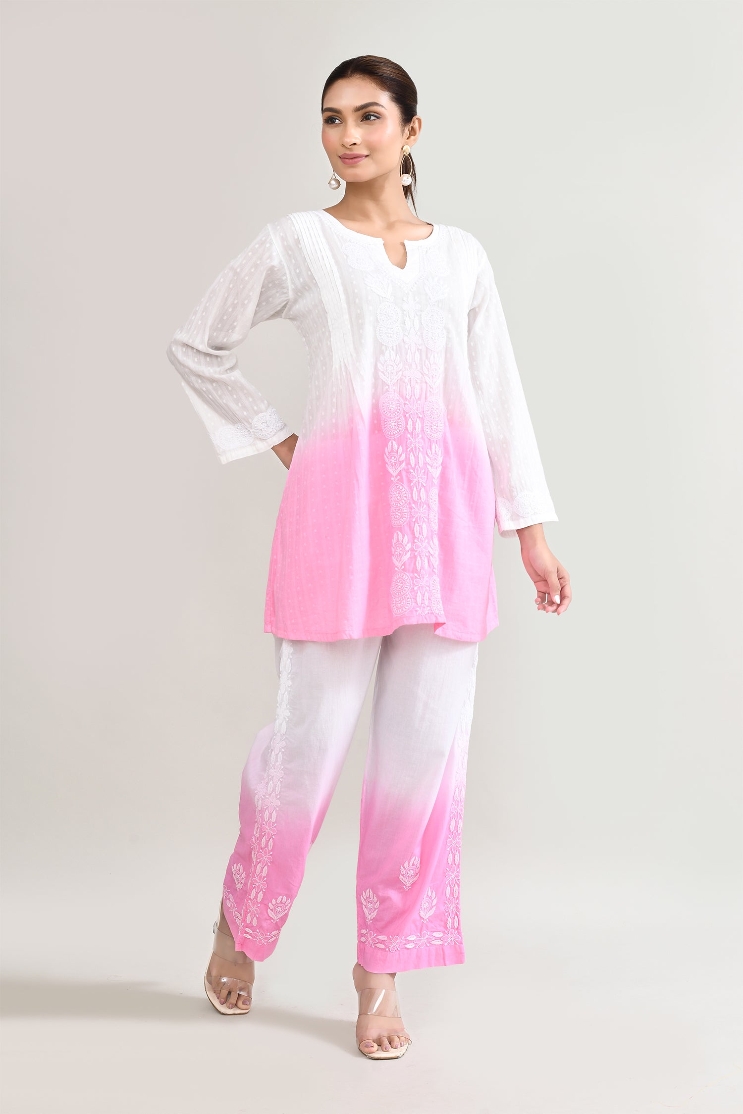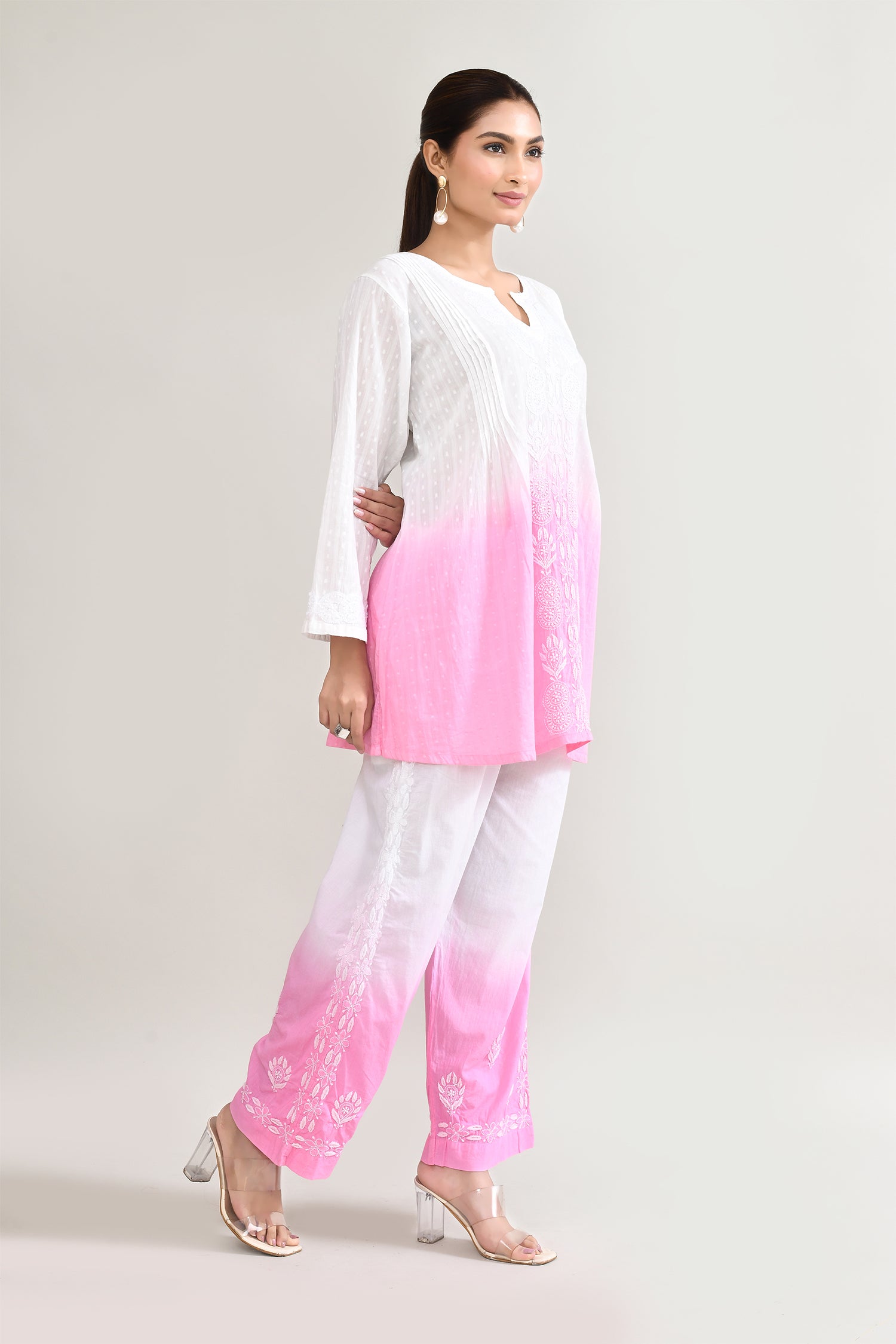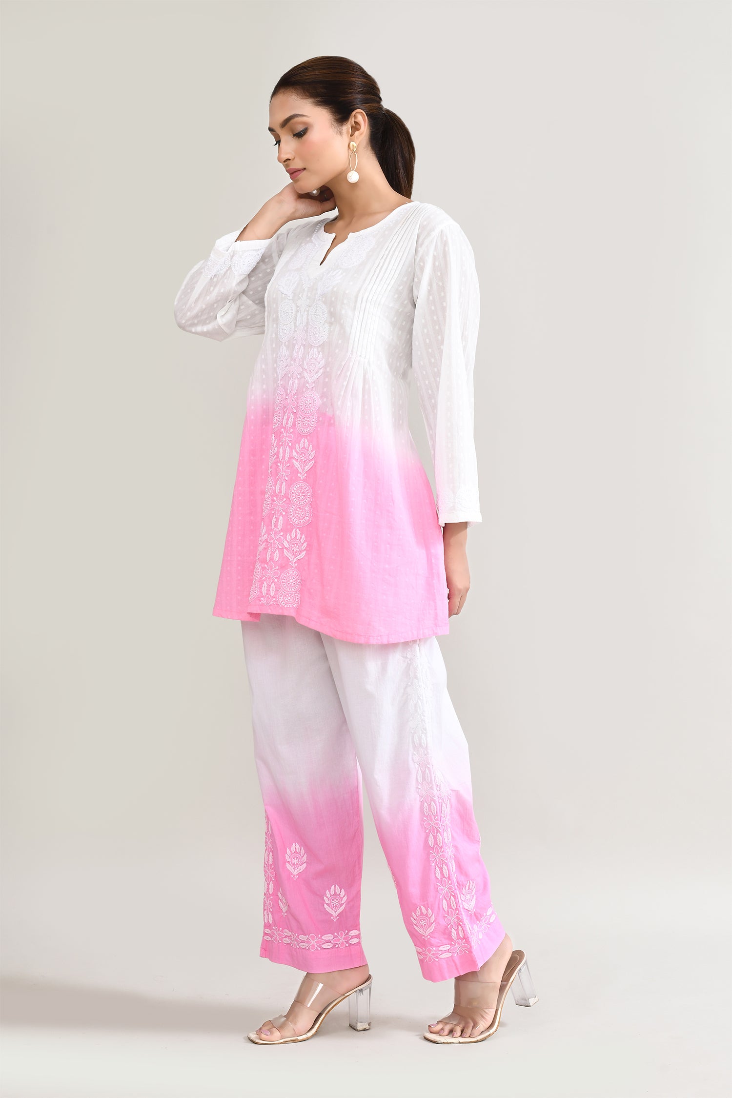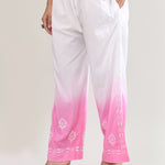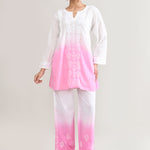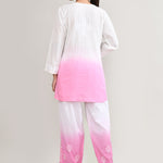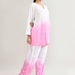 White And Pink Cotton Chikankari Suit Set