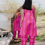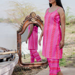 White And Pink Cotton Kurta Set With Hand Embroidery