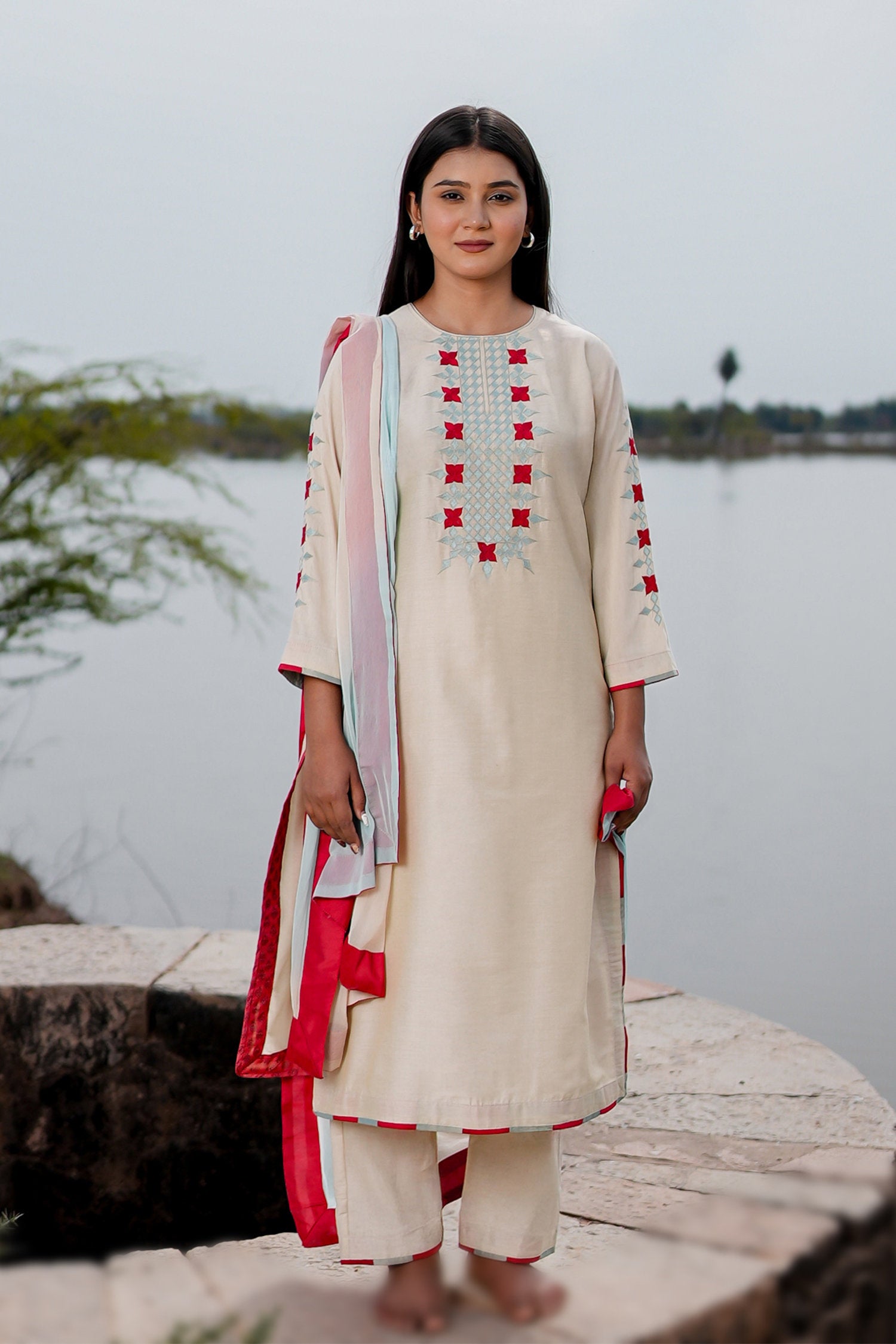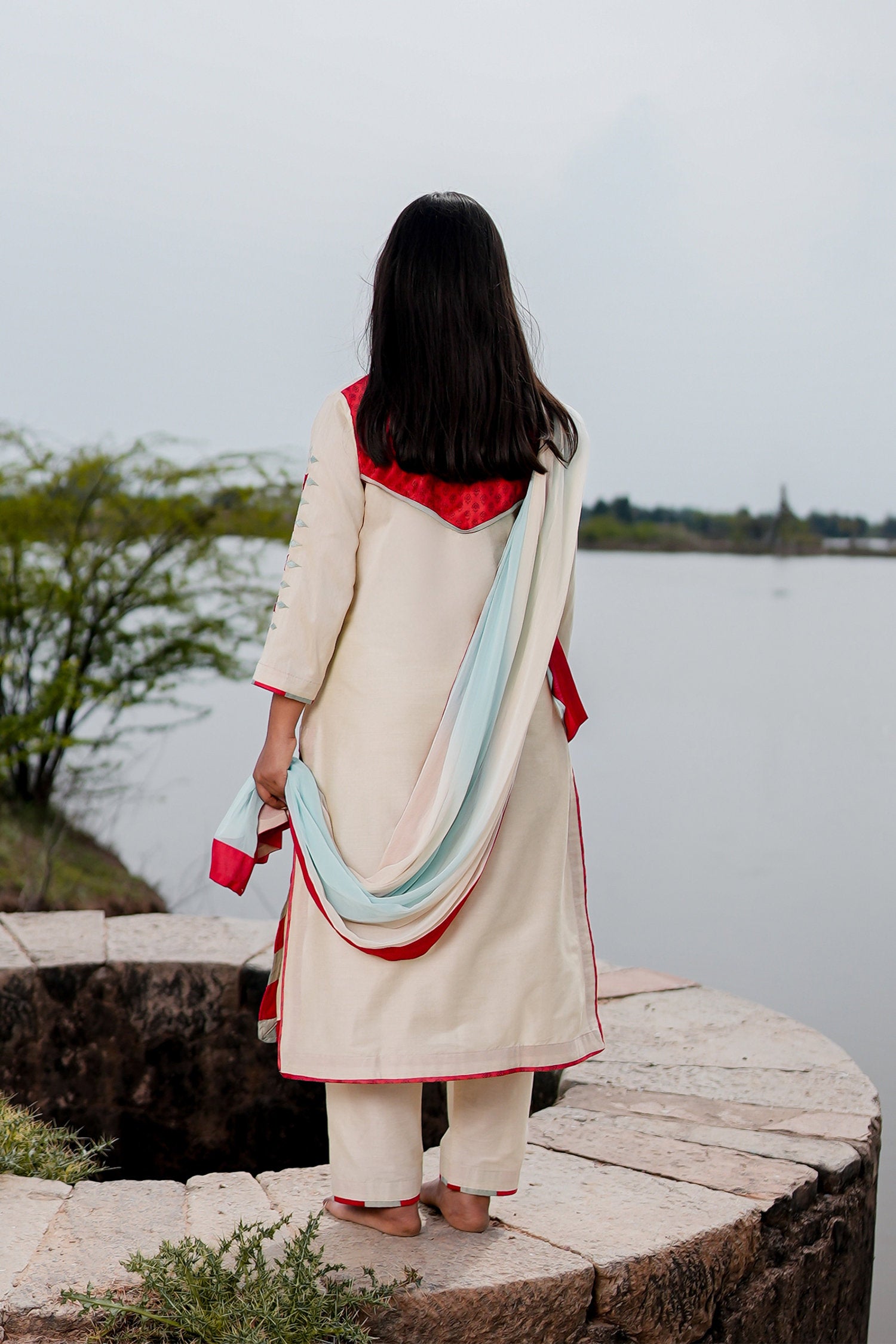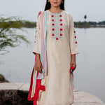 The white cotton kurta set with hand embroidery and chiffon dupatta for a beautiful and stunning look with traditional touch.