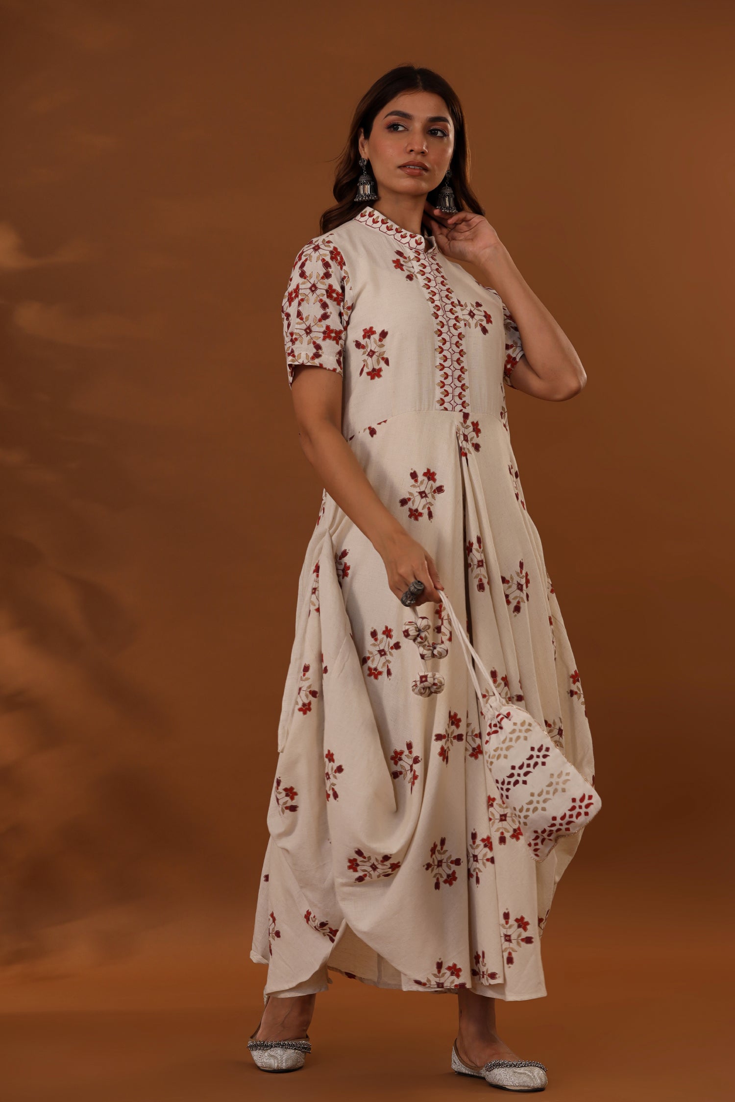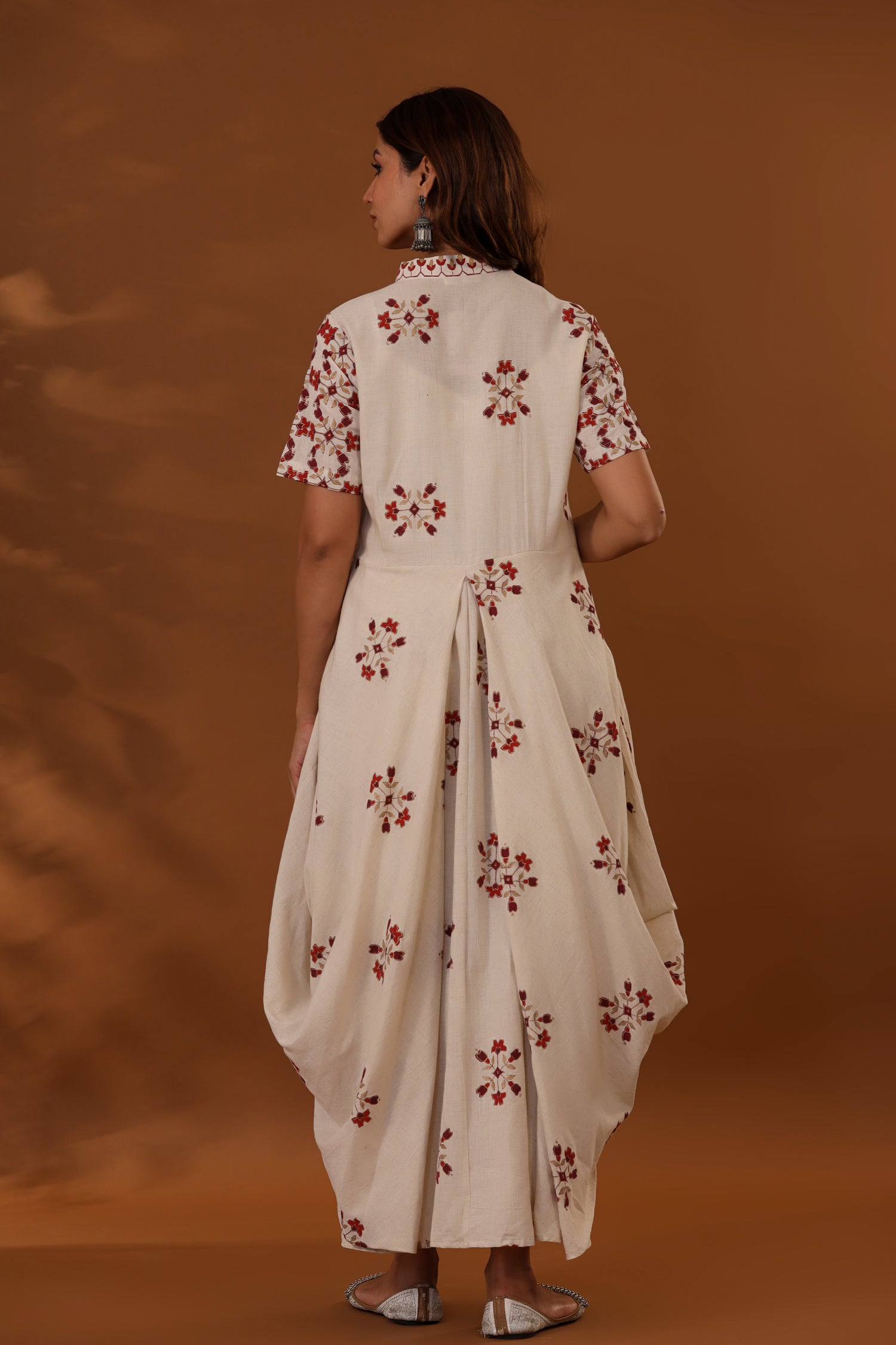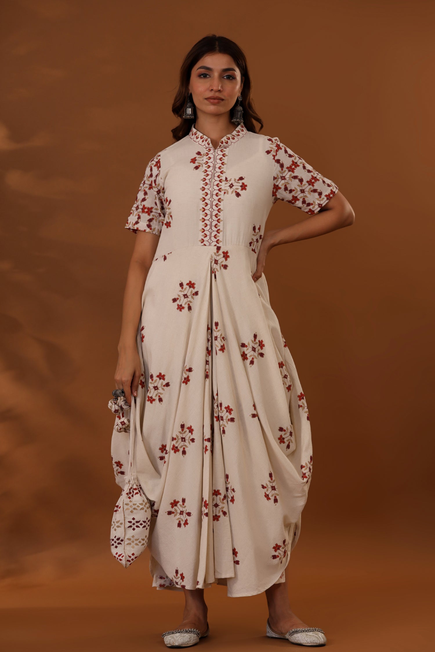 White Double Side Drape Handcrafted Cotton Chola Dress