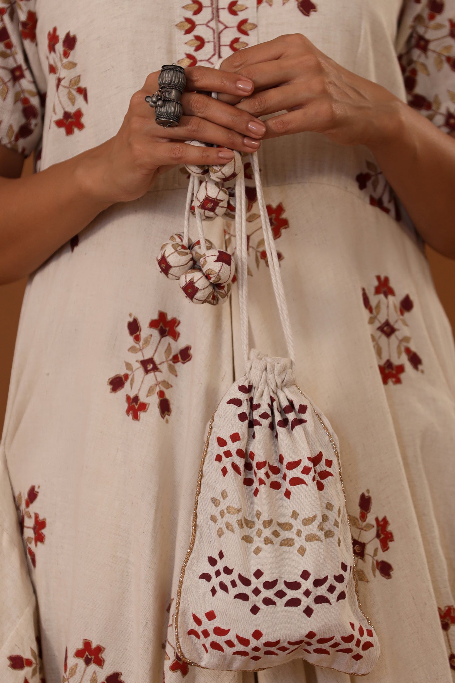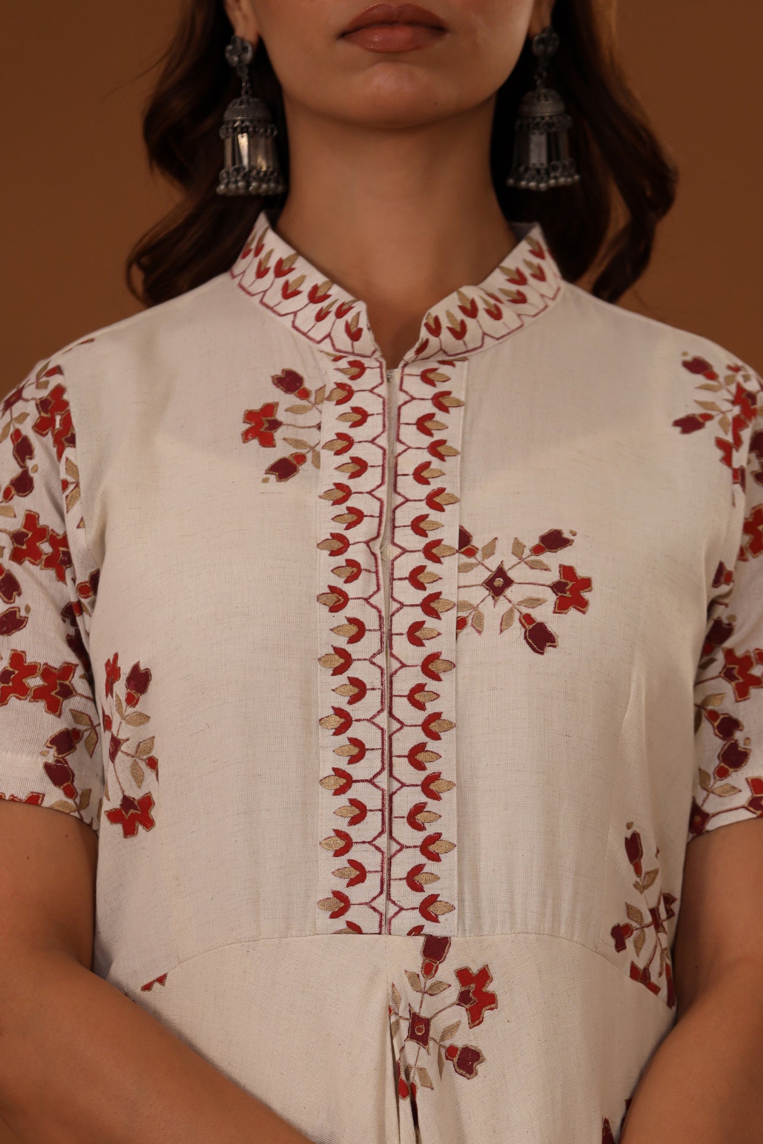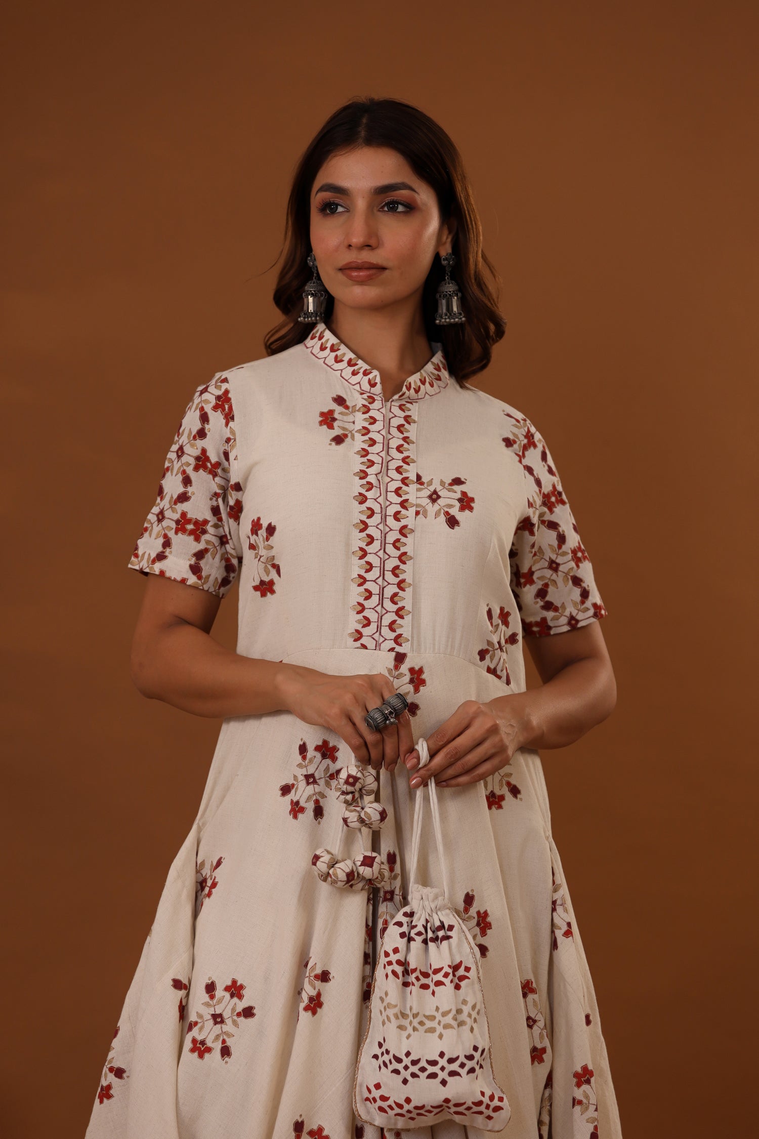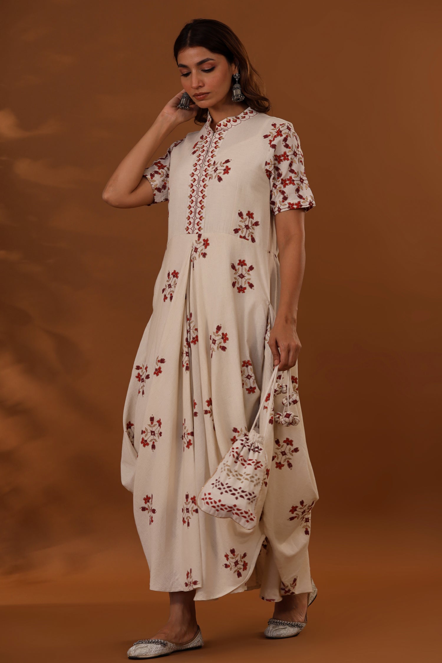 White Double Side Drape Handcrafted Cotton Chola Dress