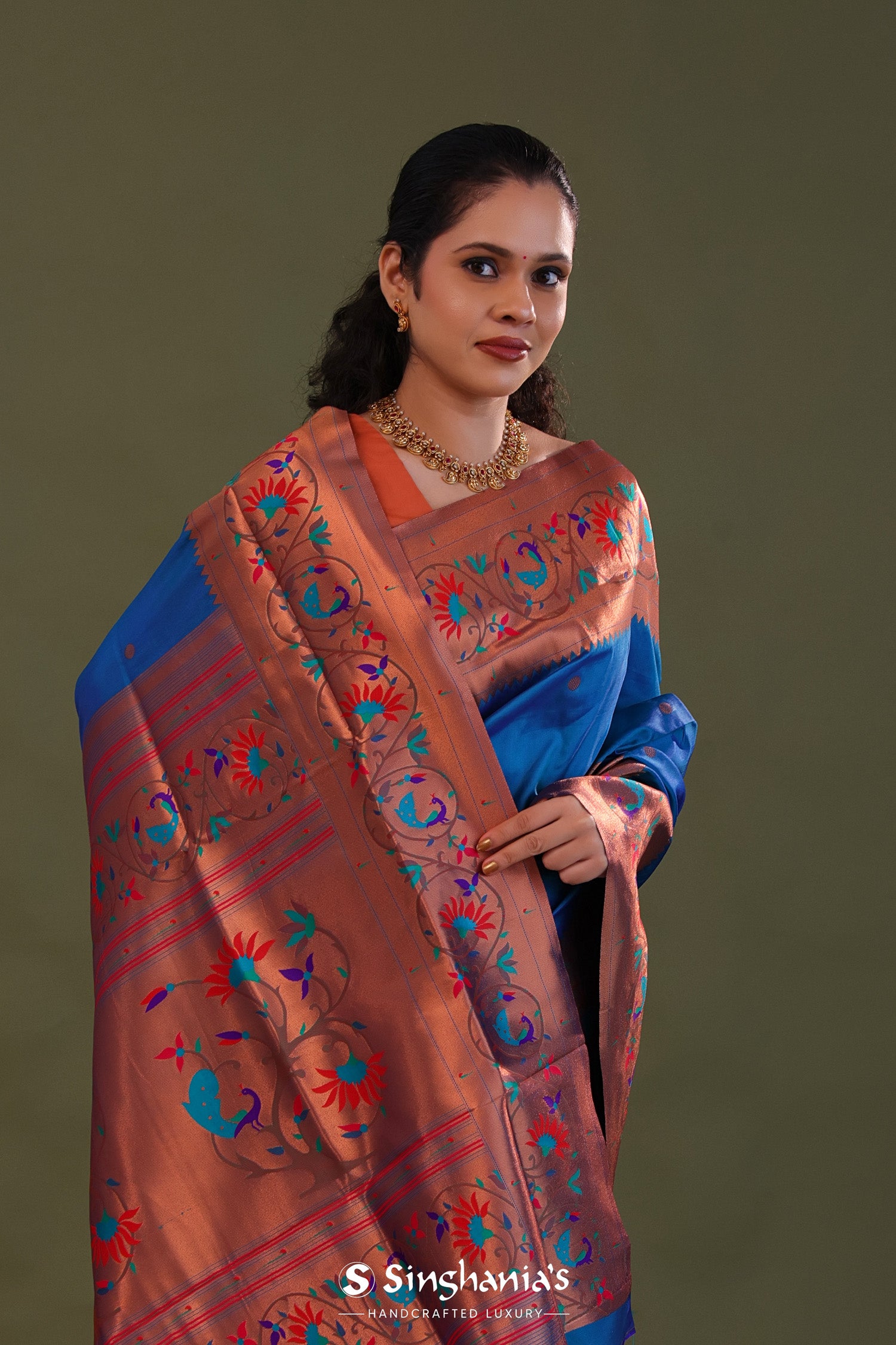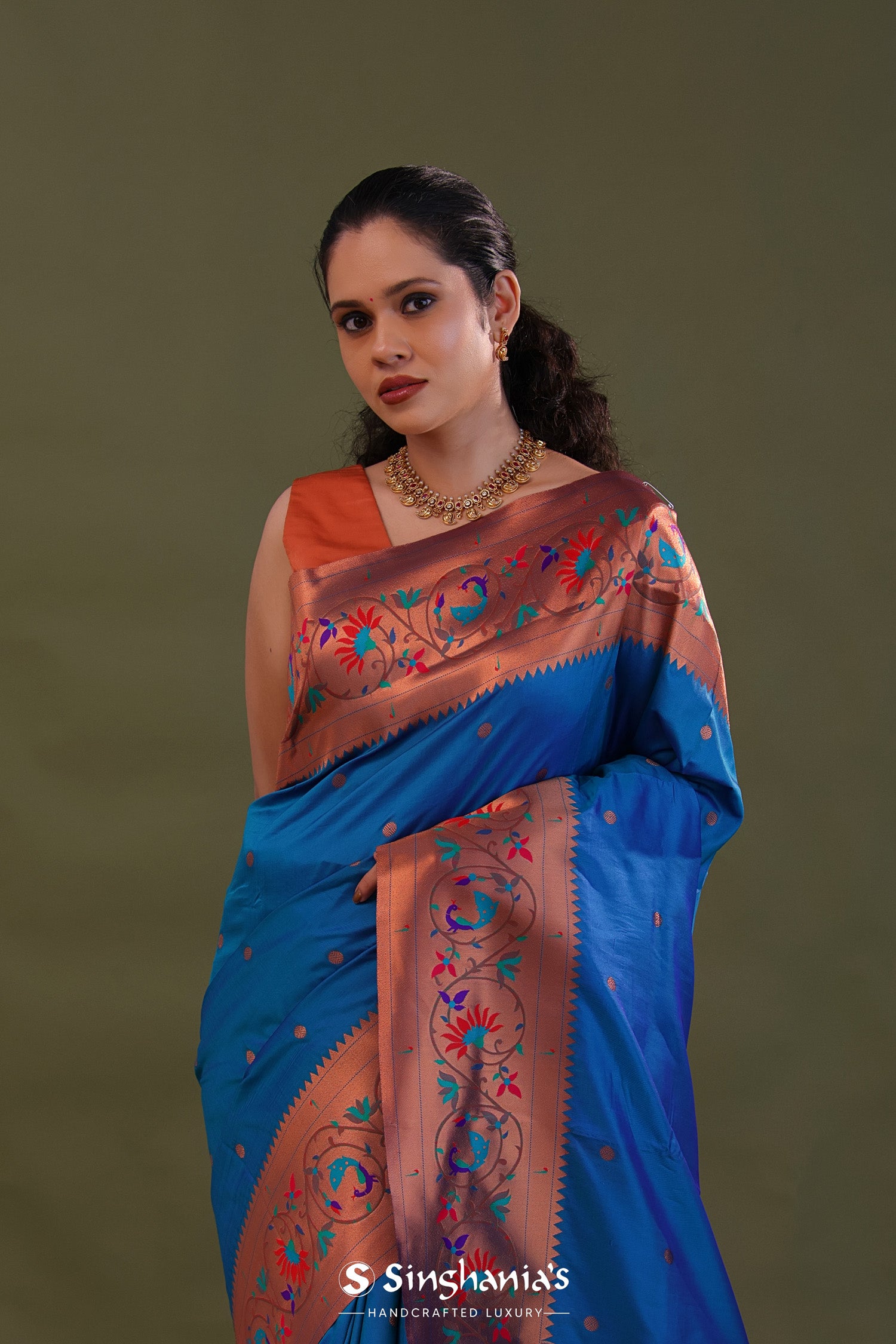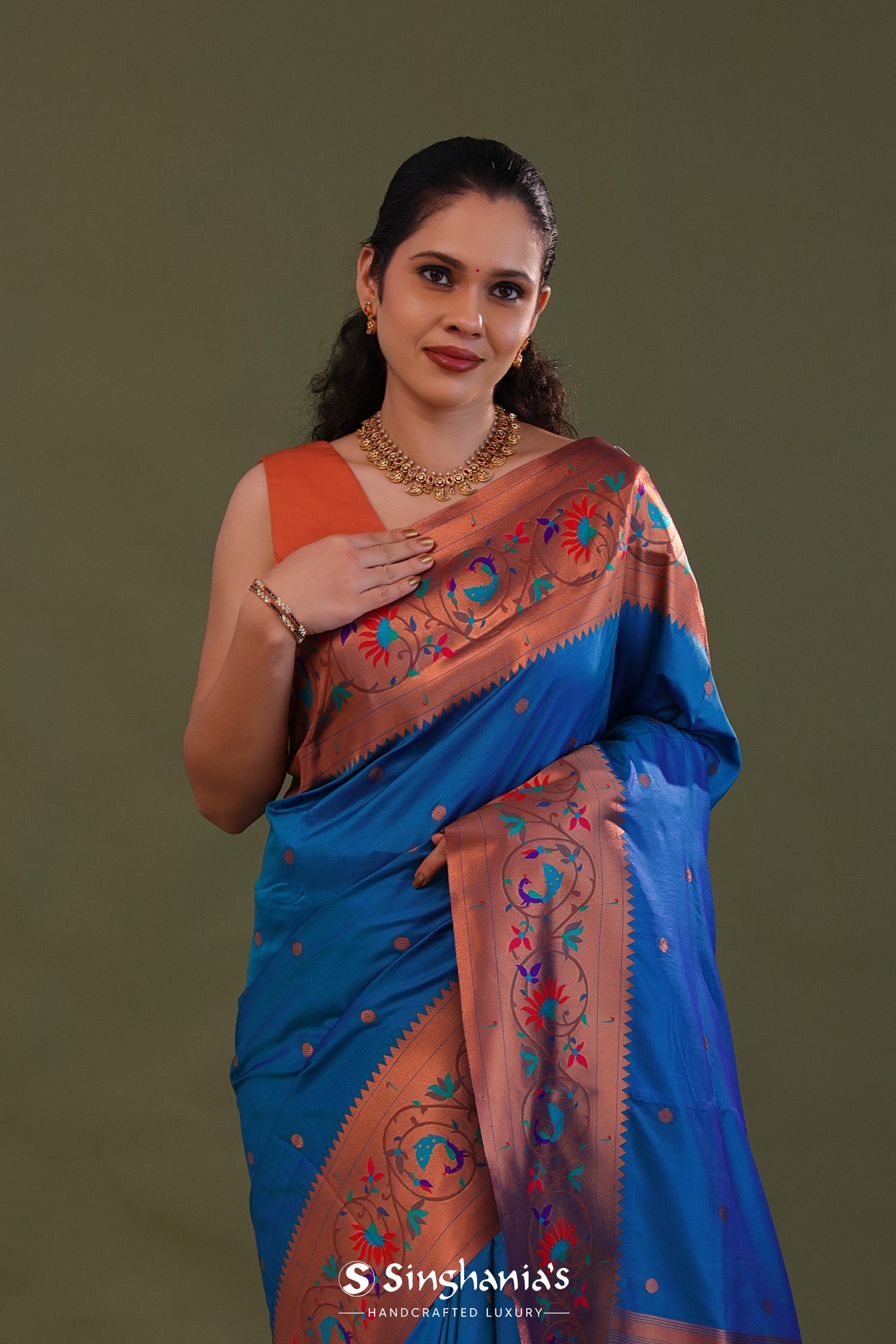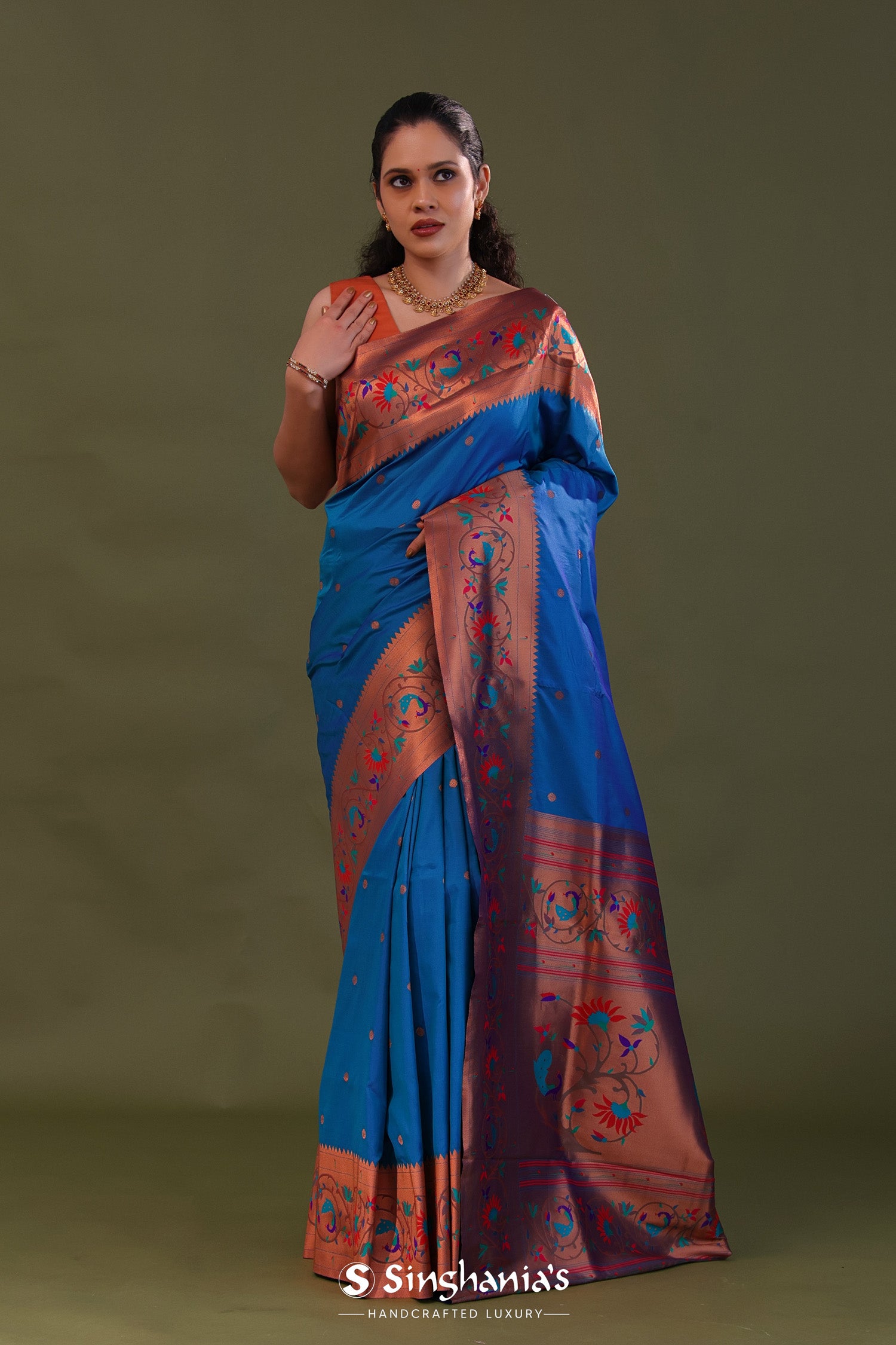 Yale Blue Paithani Saree With Butti'S