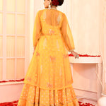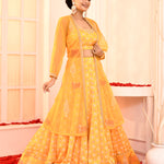 Yellow Block Printed With Neck Dori Embroidered Blouse And Foil Printed Lehenga Set