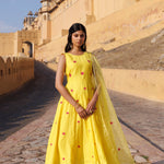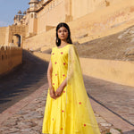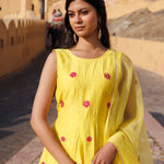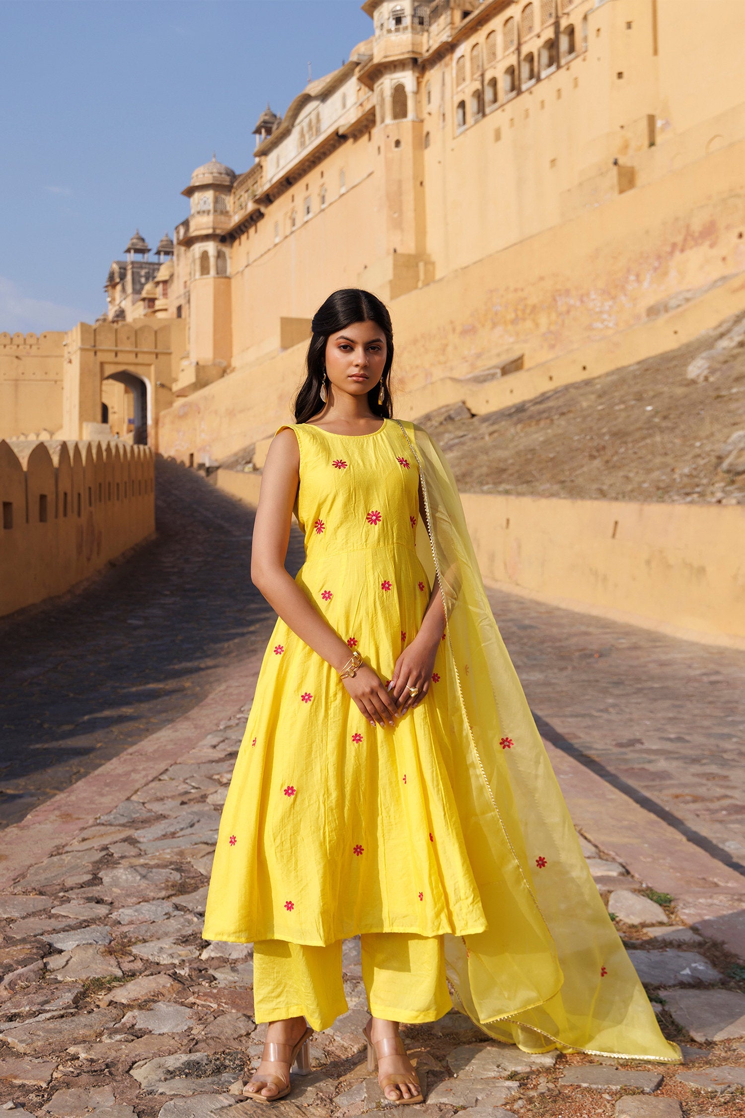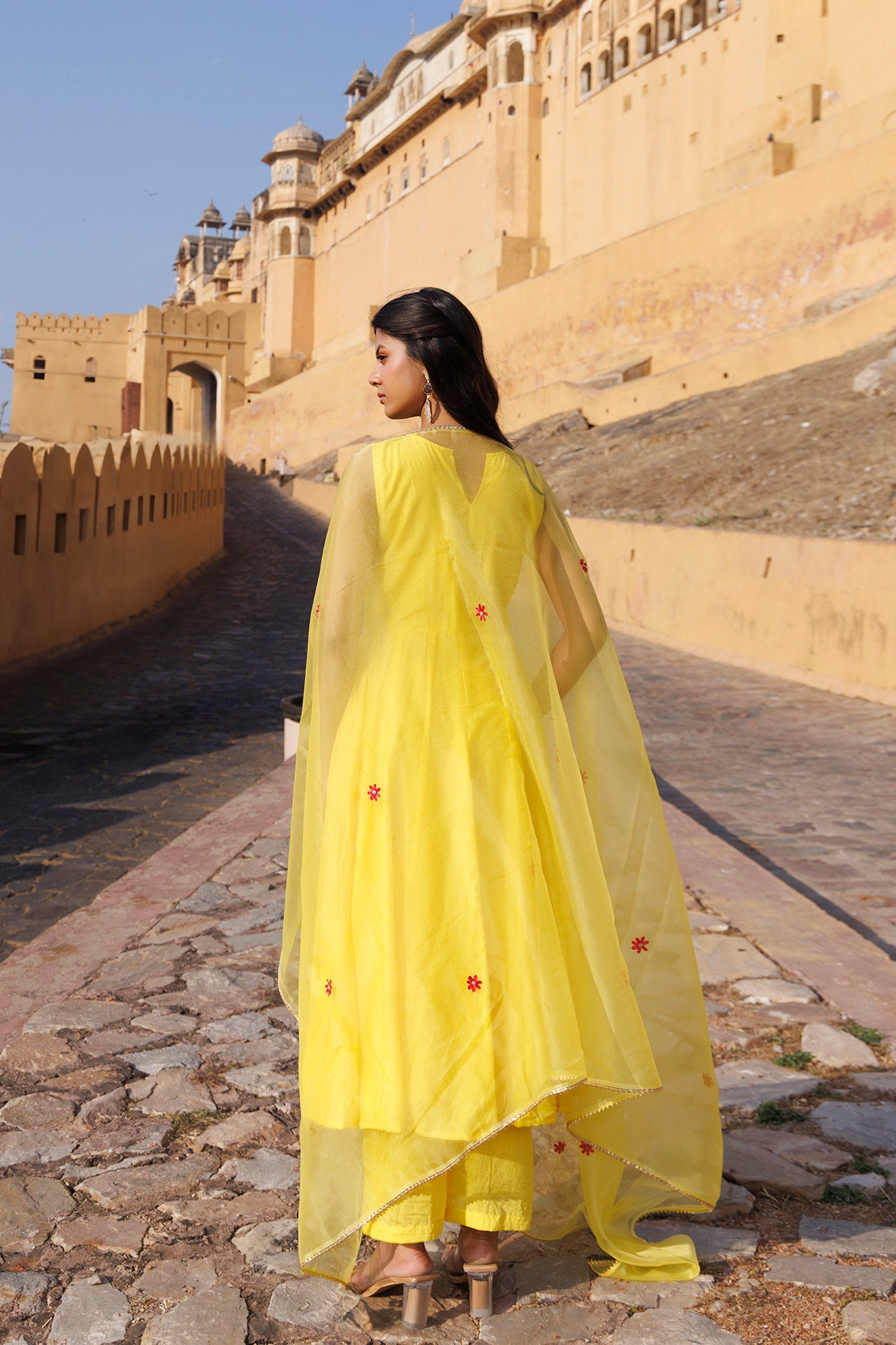 Yellow Chanderi Kurta Set With Floral Embroidery