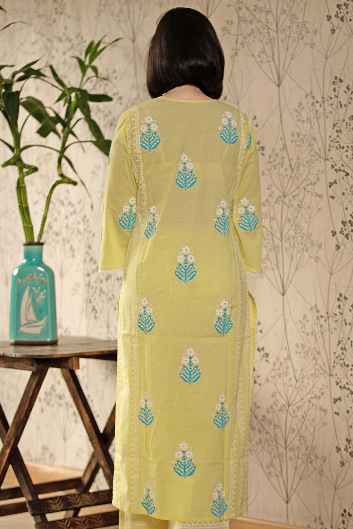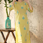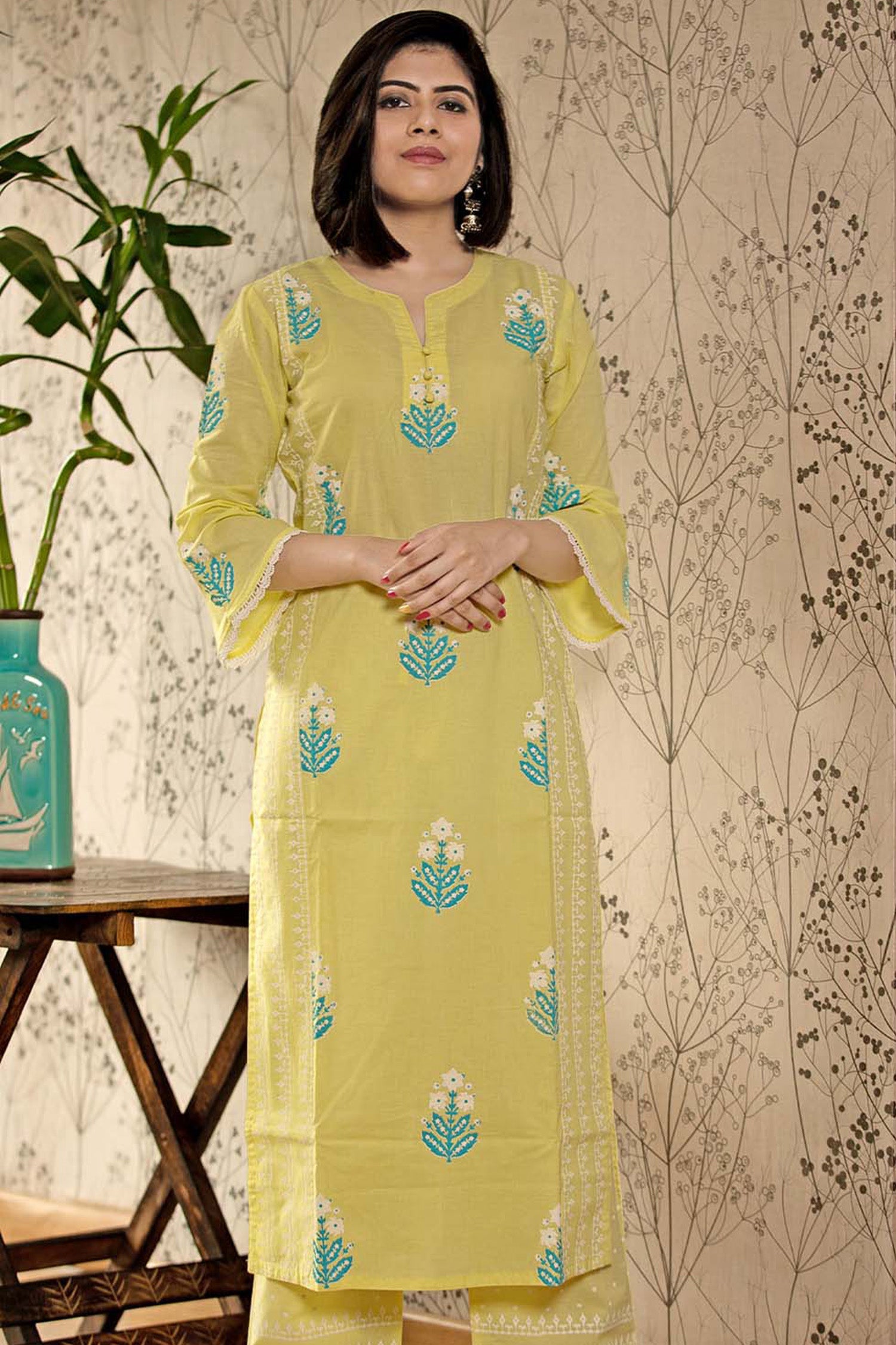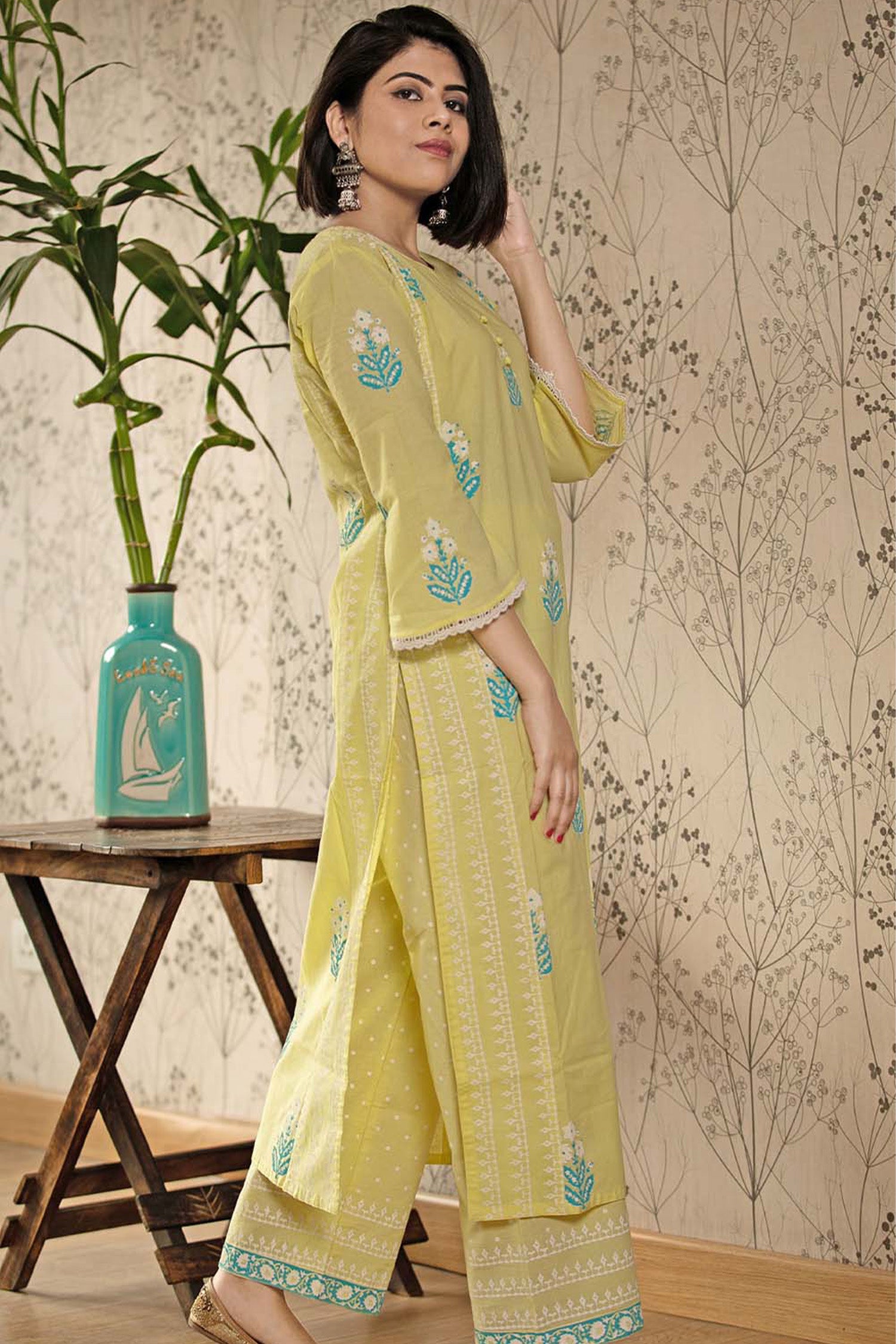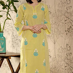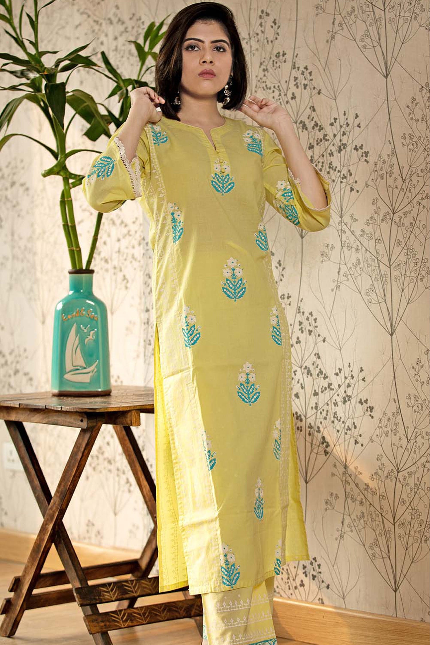 Yellow Cotton Kurta Set With Floral Pattern Print