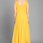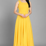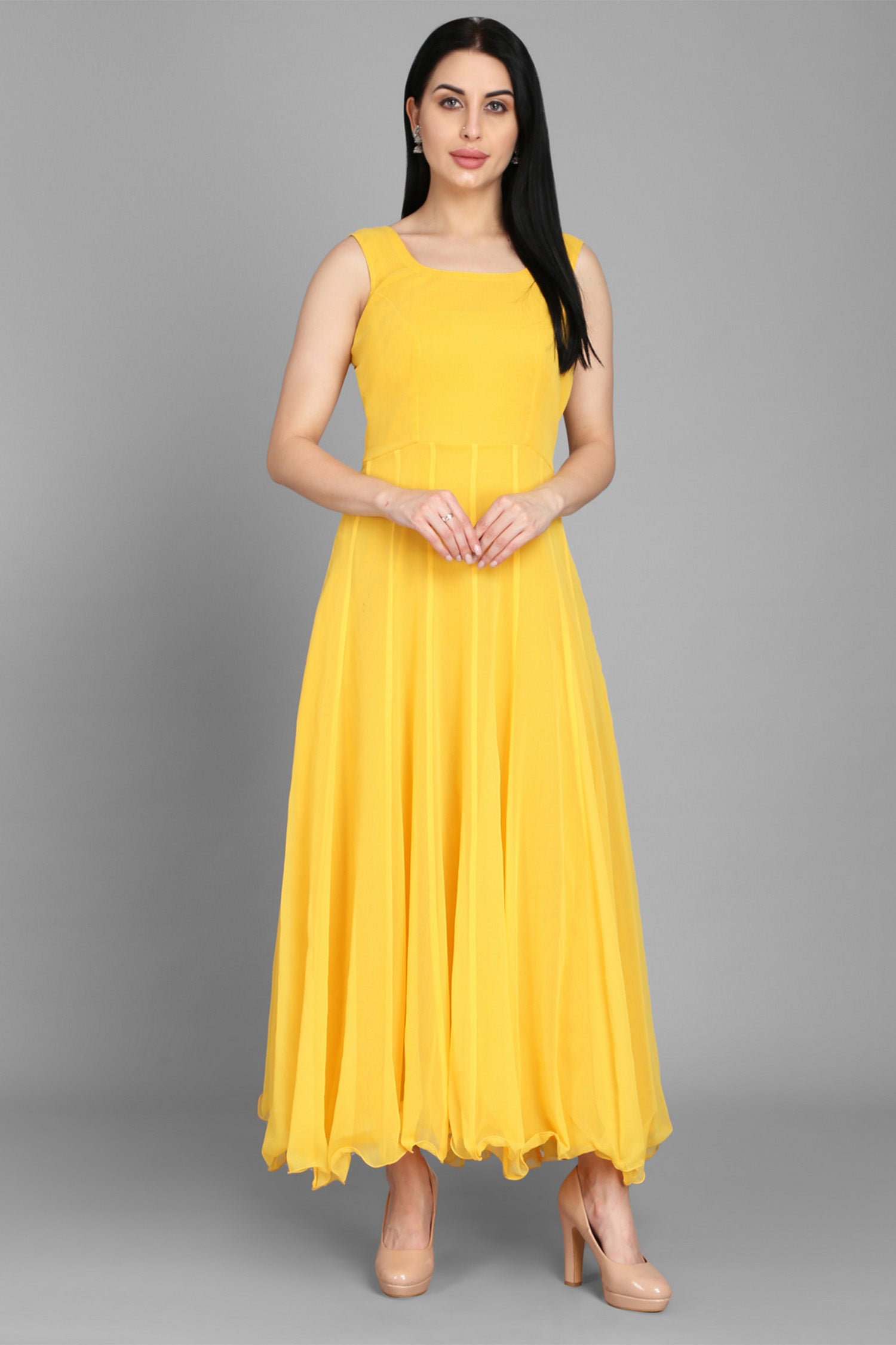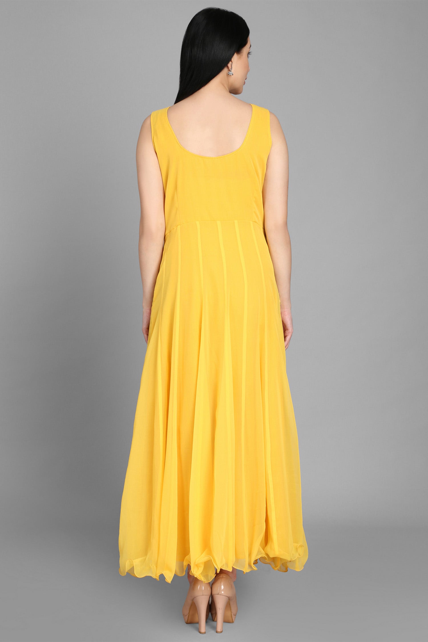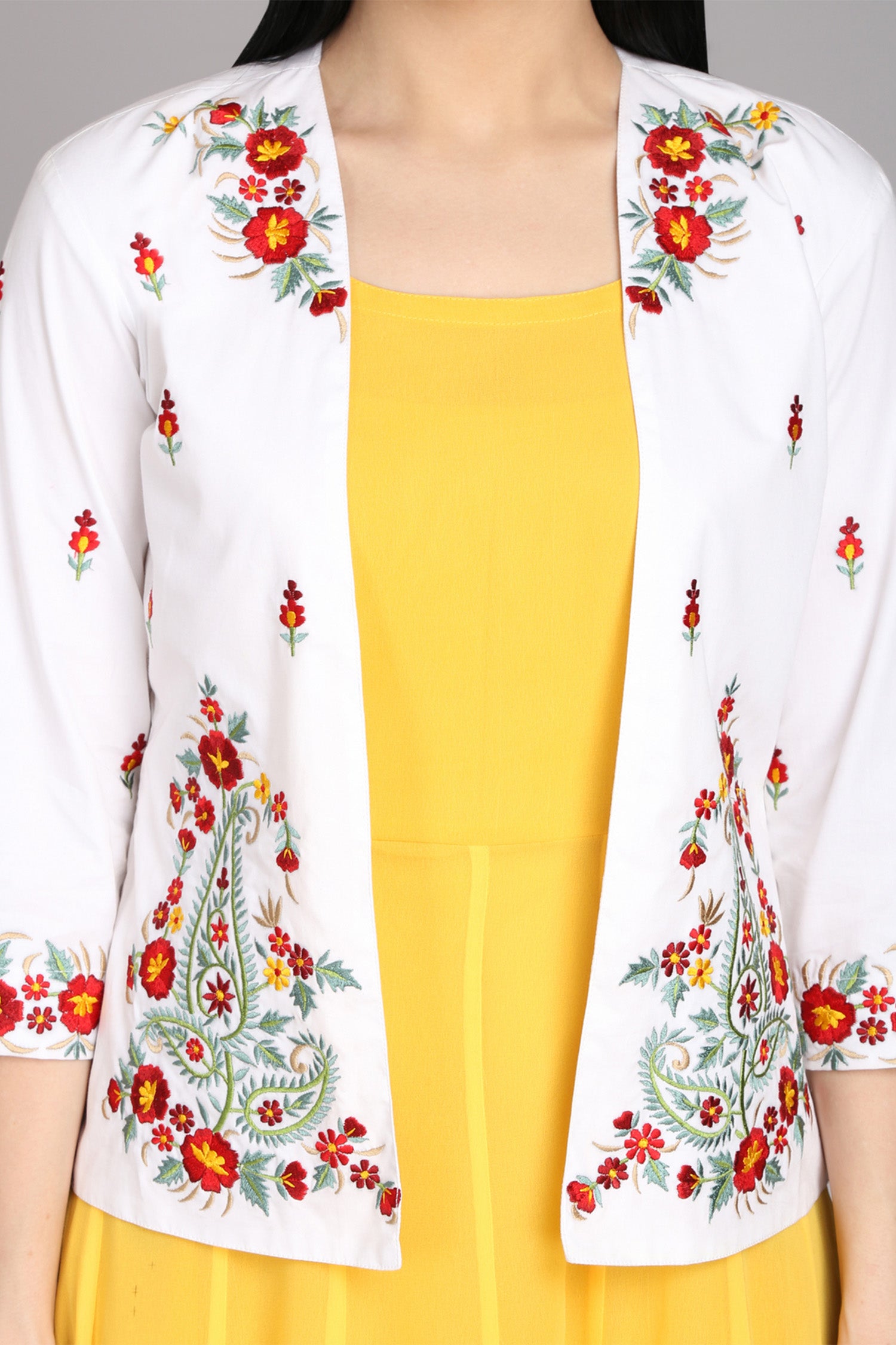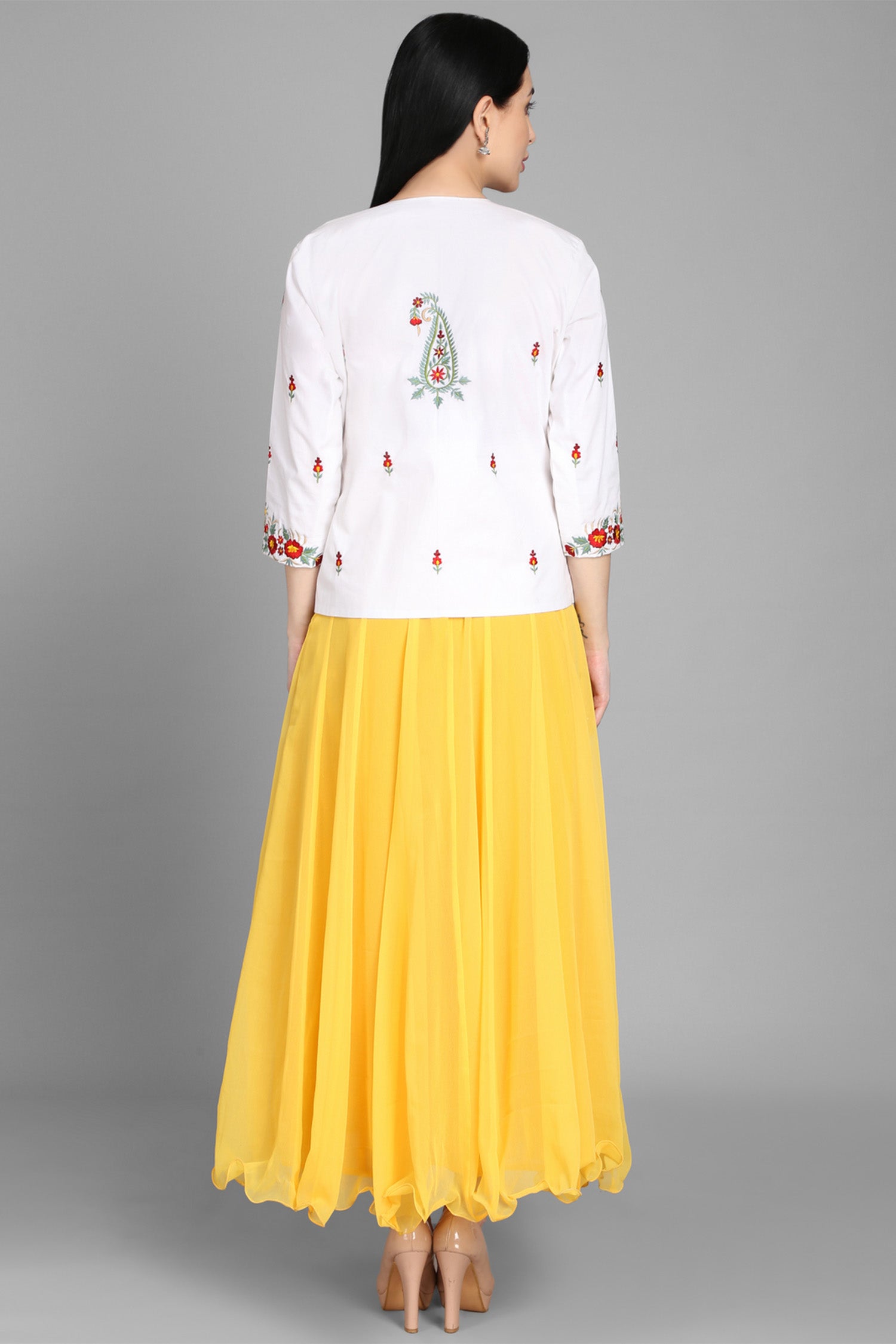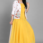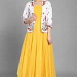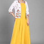 The Yellow Georgette Long Kurti with U Neck and Embroidered Jacket for an ethnic look with a combination of Tradition and Style.