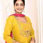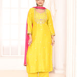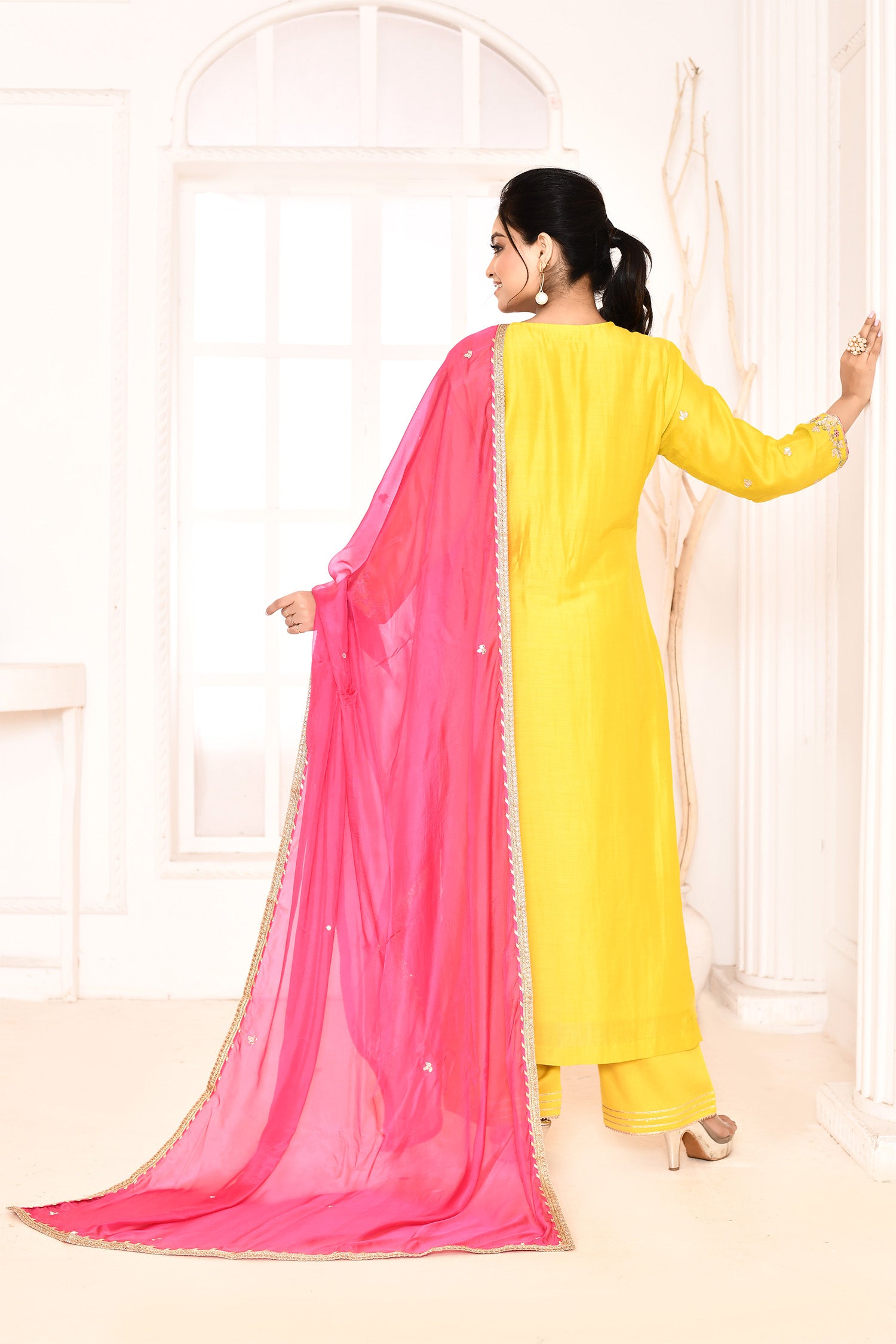 Yellow Hand Embroidery With Block Printed Straight Kurta And Palazzo