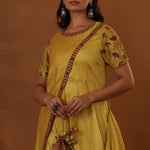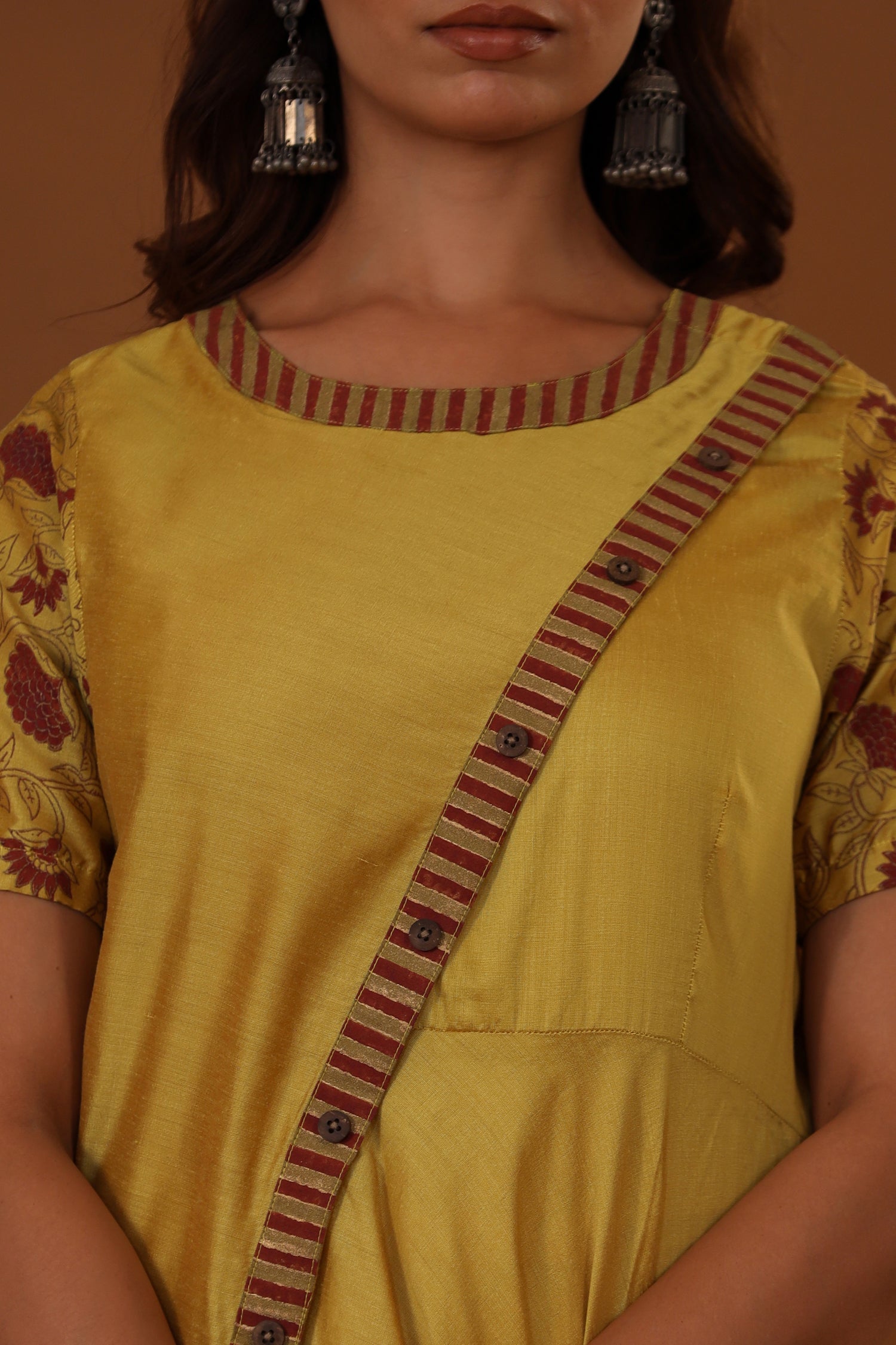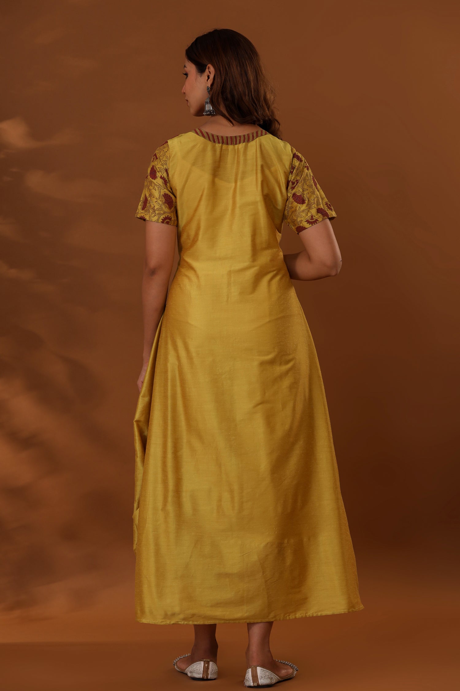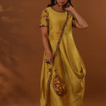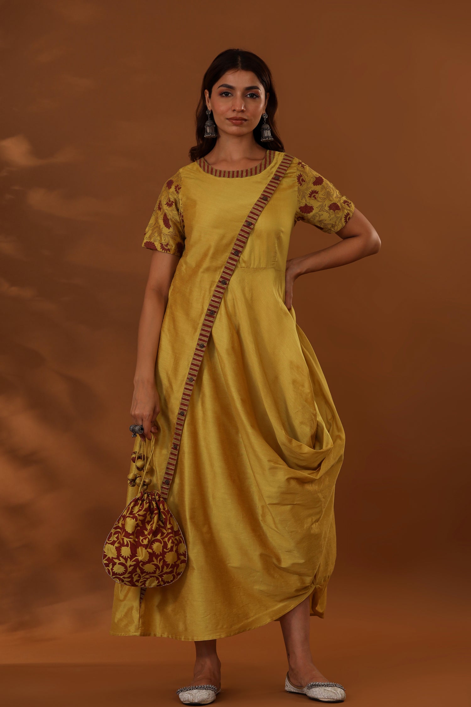 Yellow Handcrafted One Side Drape Cotton Silk Chola Dress