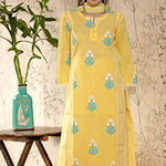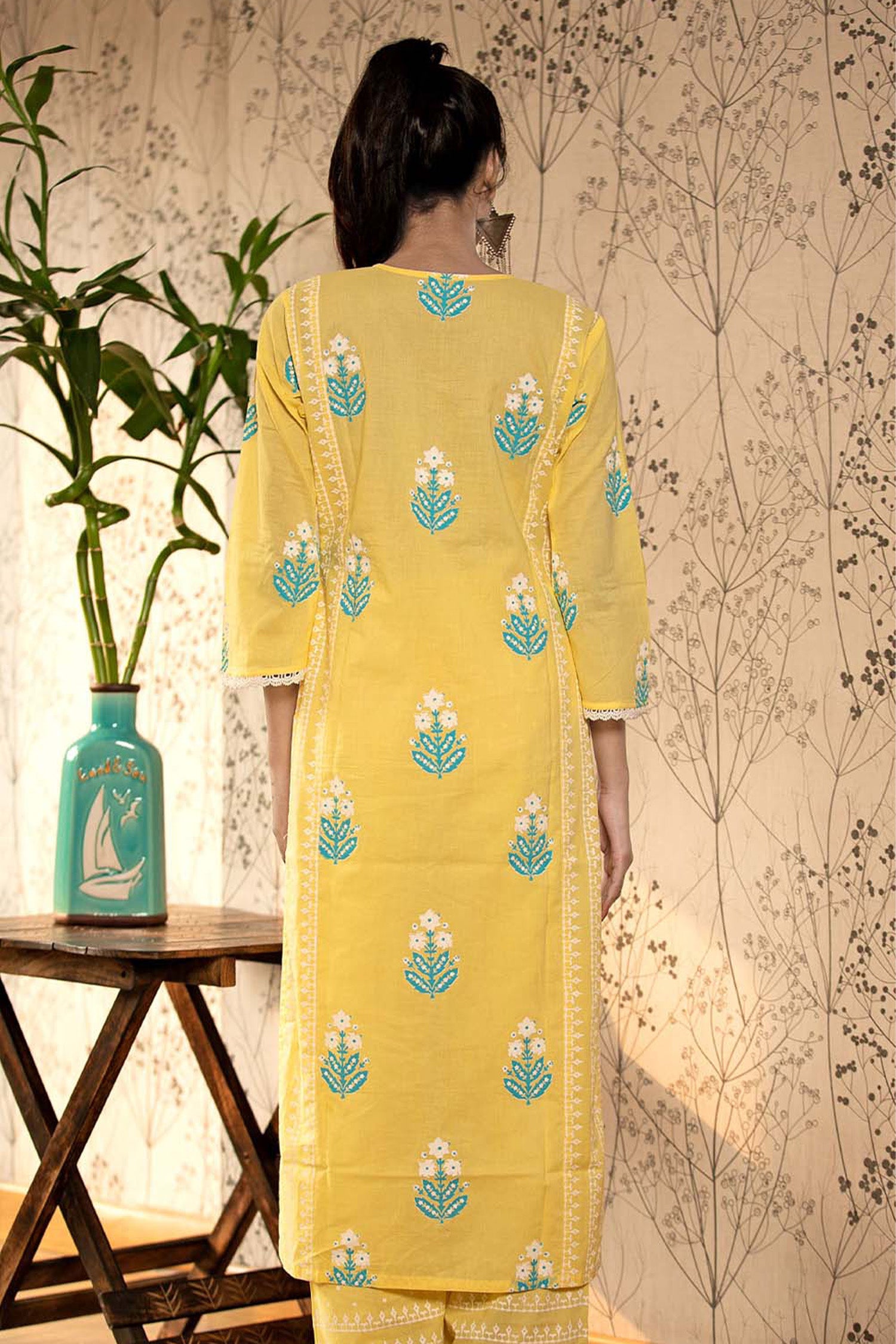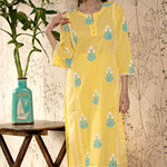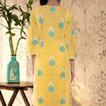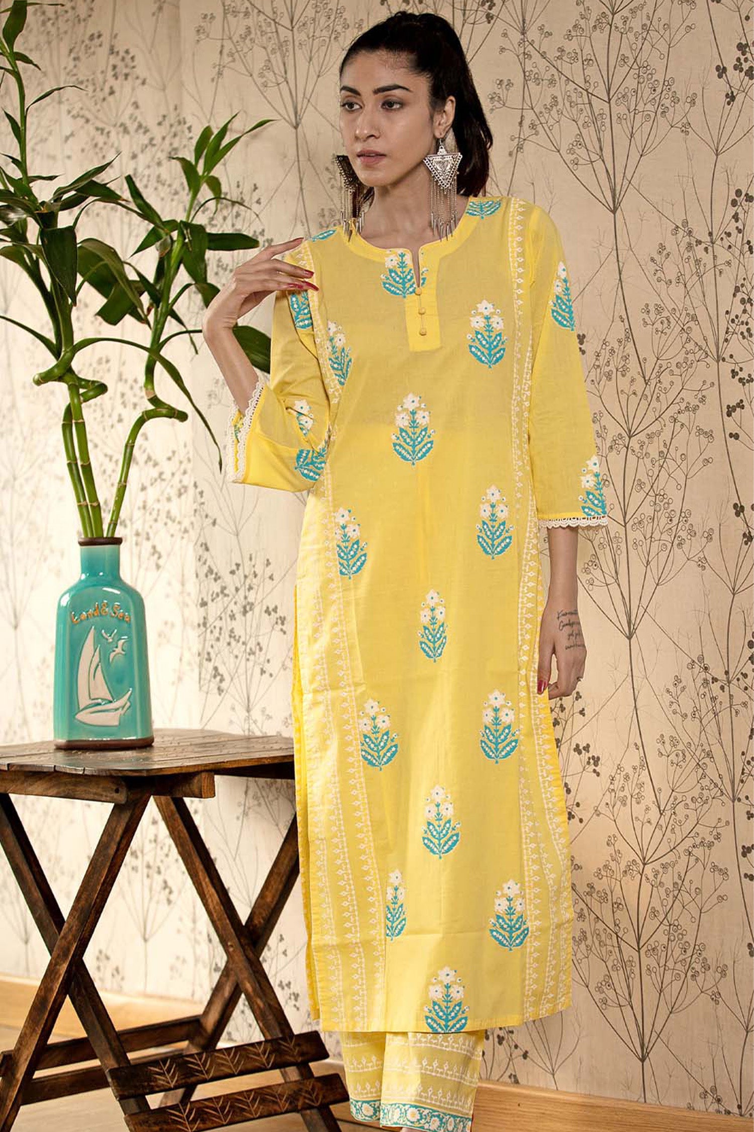 Yellow Printed Cotton Kurta Set With Floral Pattern