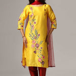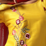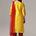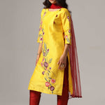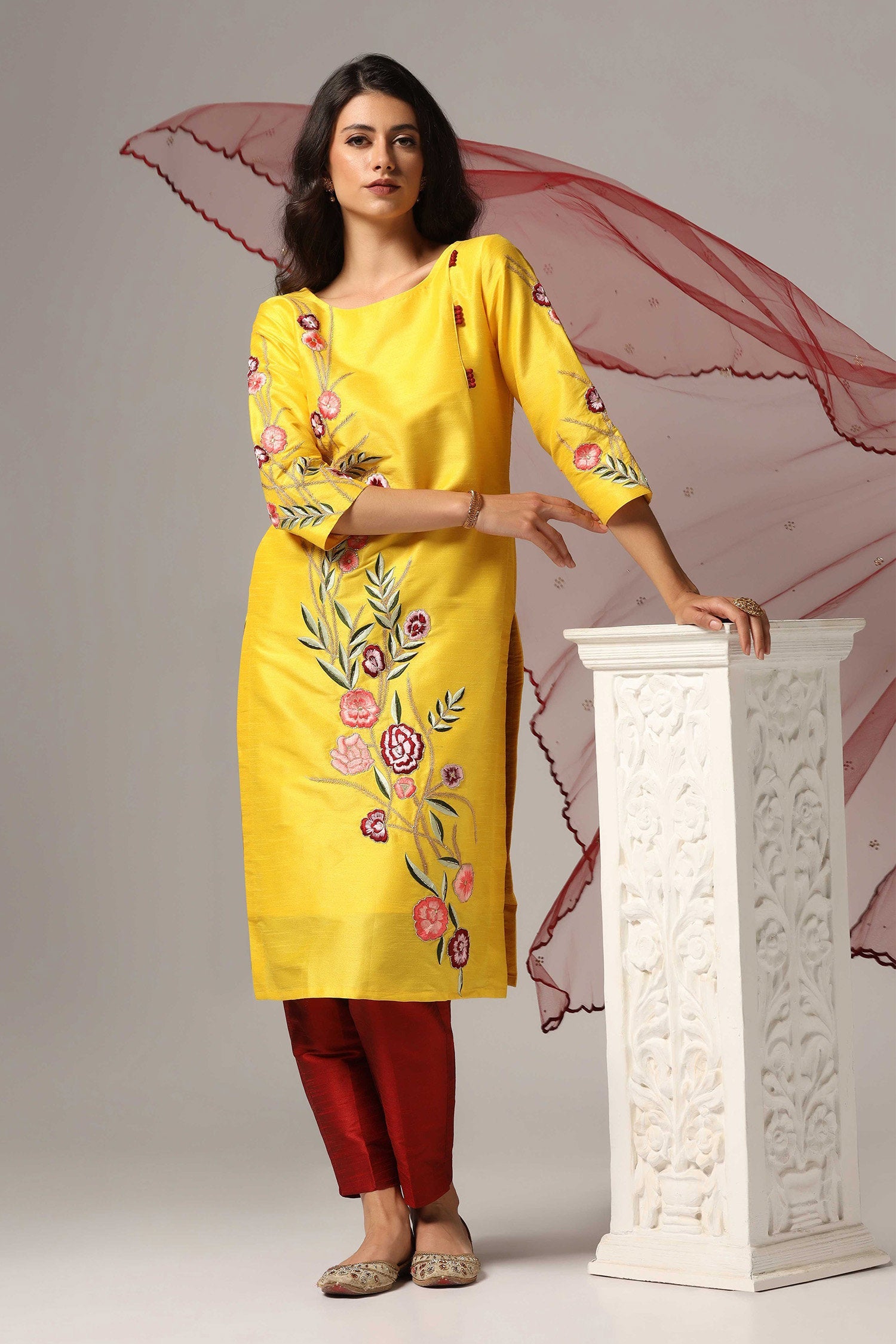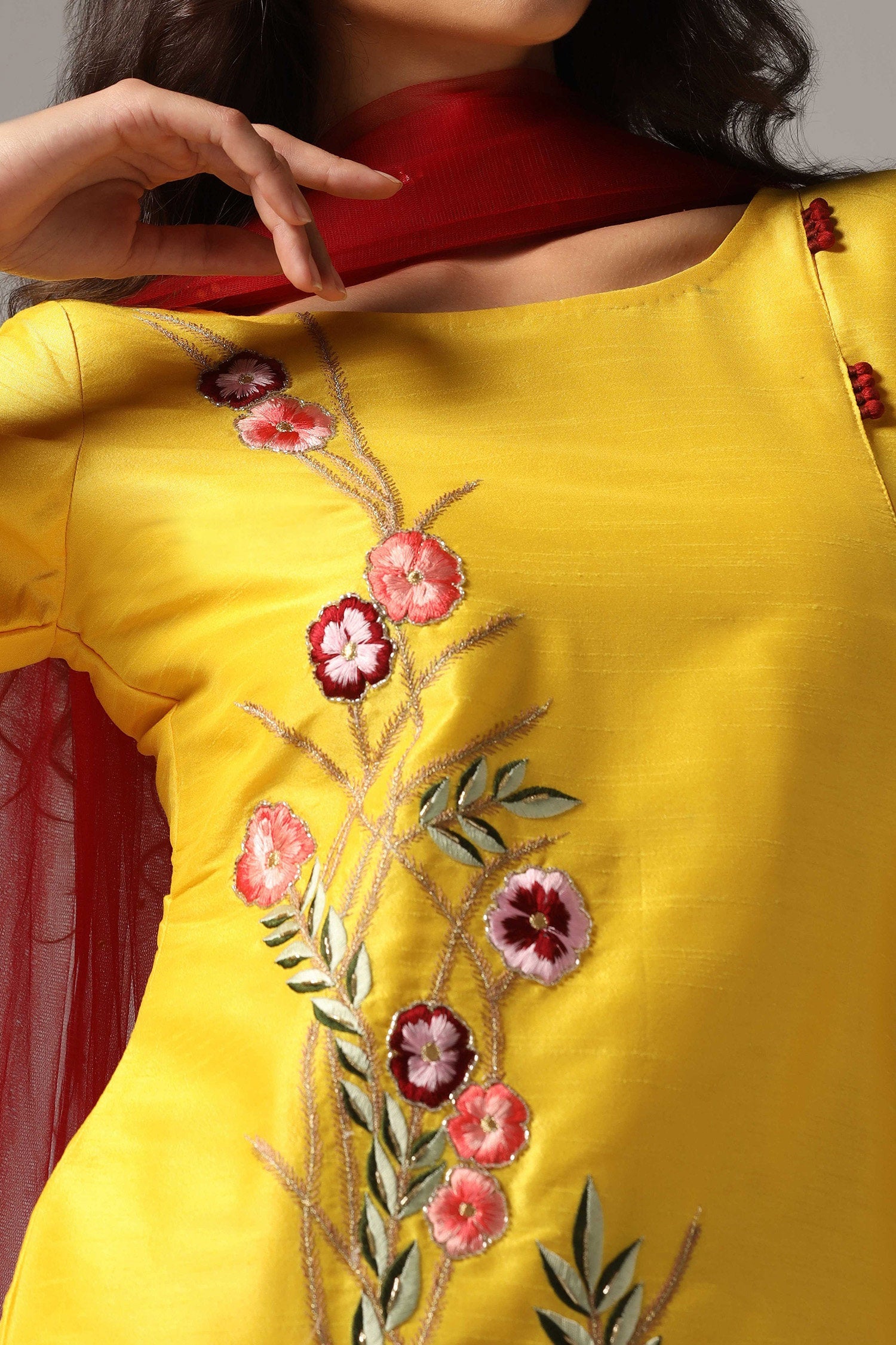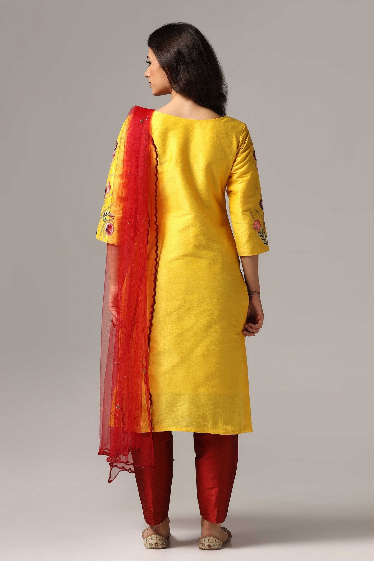 Yellow Raw Silk Kurti With Pants And Dupatta