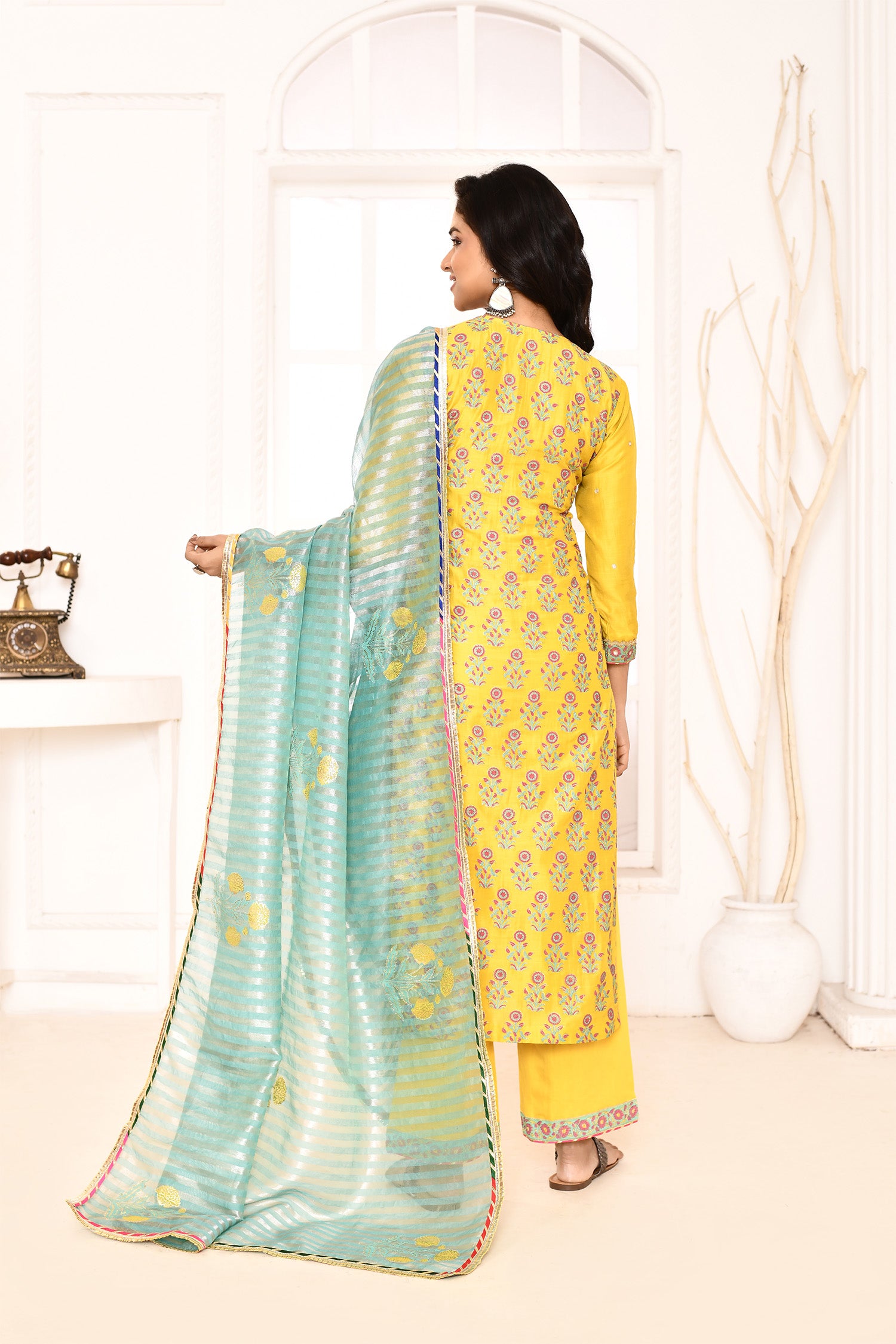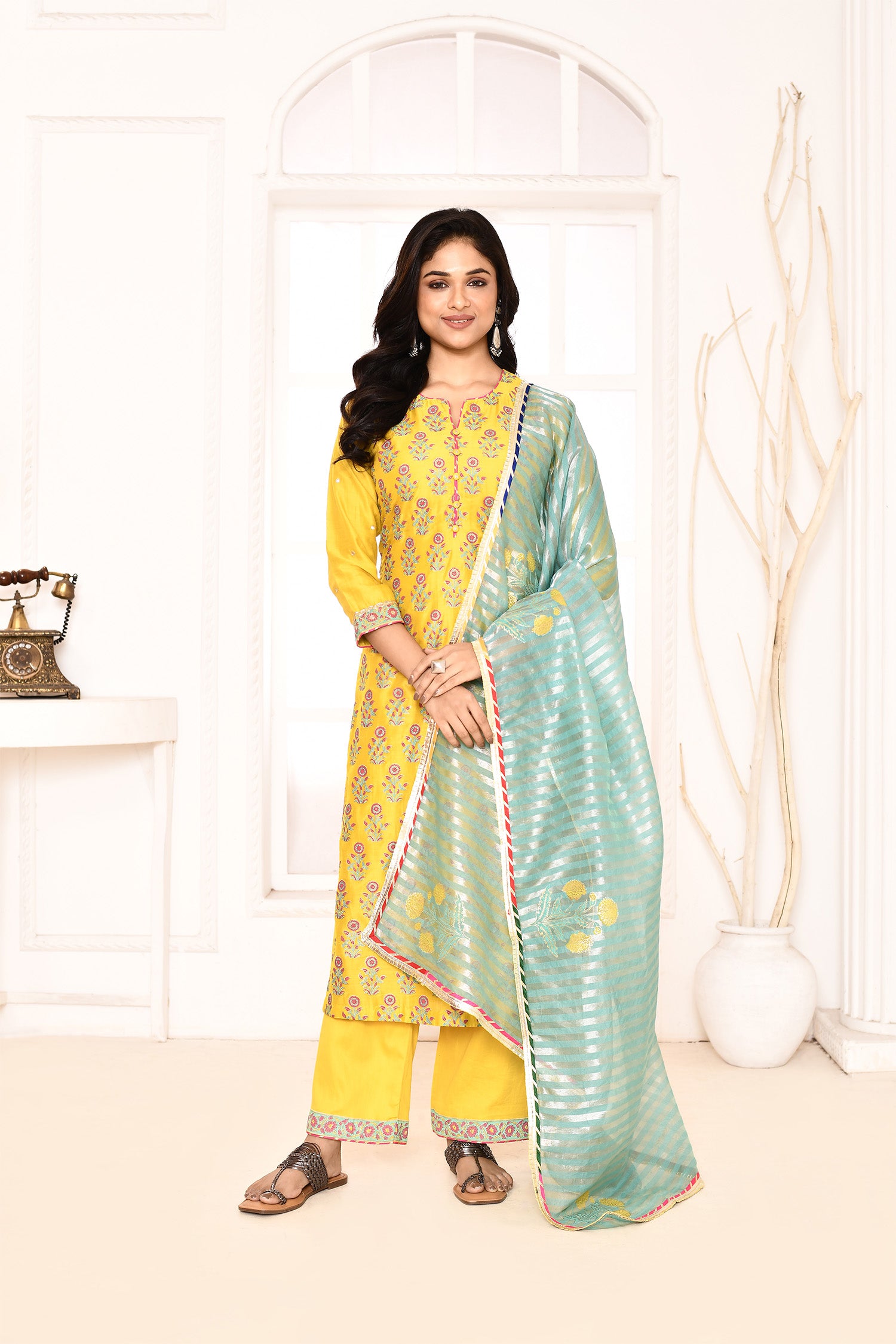 Yellow Straight Kurta And Palazzo With Dupatta Set